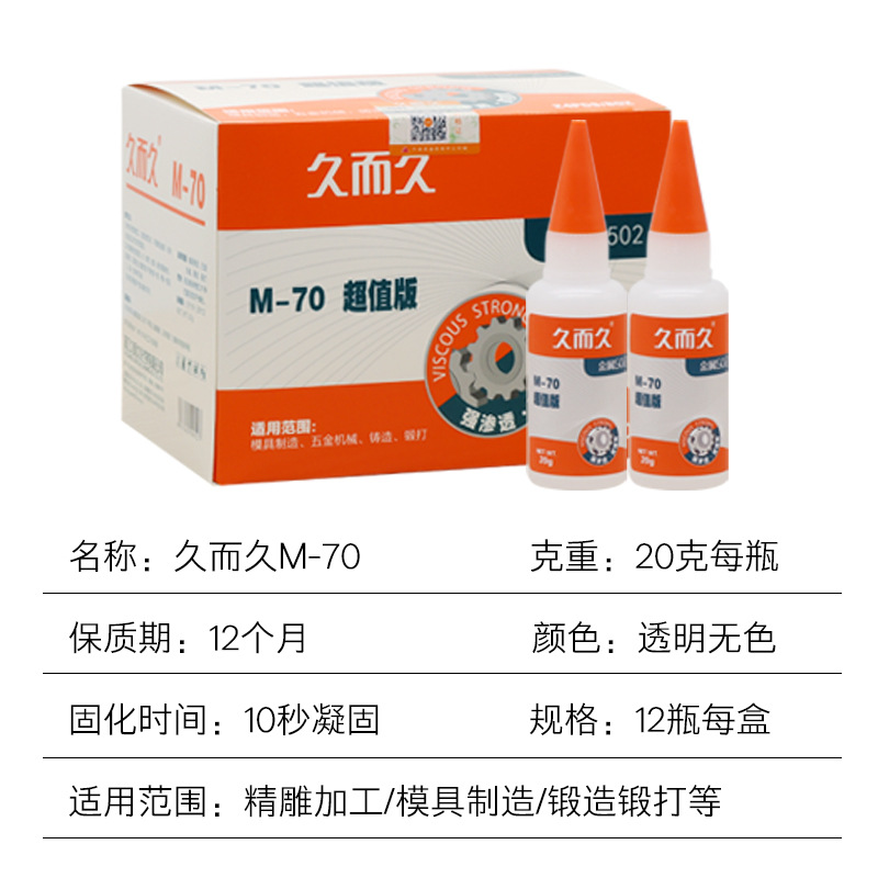 批发供应久而久M-70五金模具胶不锈钢金属强力粘金属模具瞬间胶水