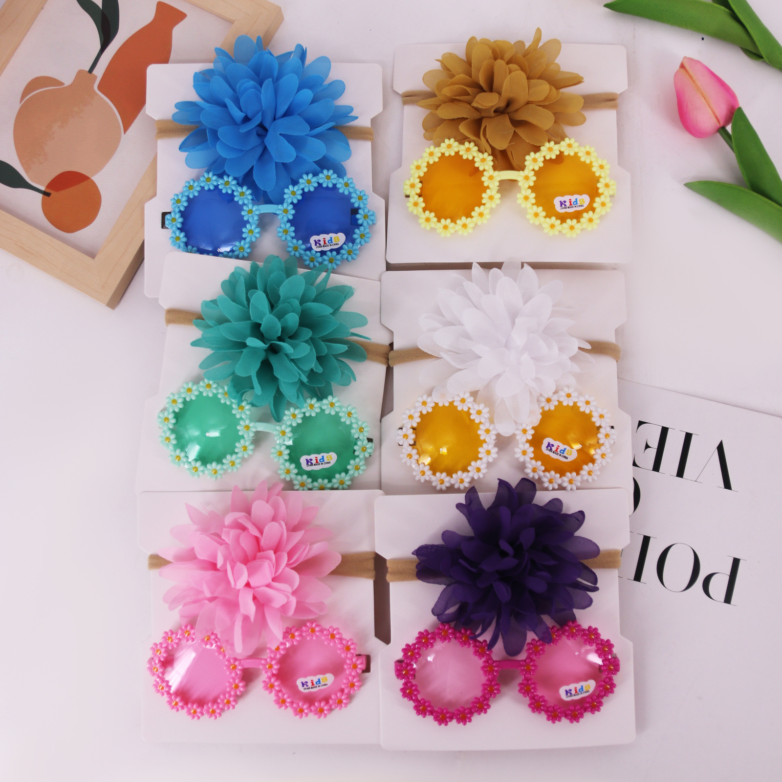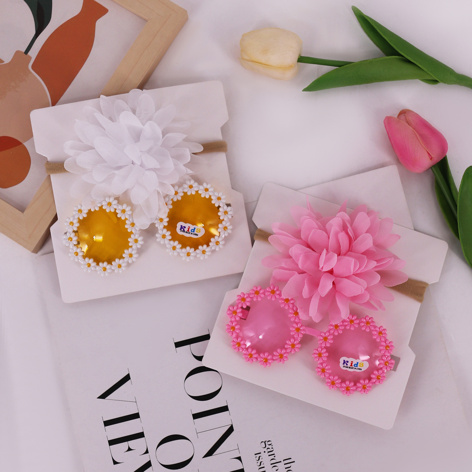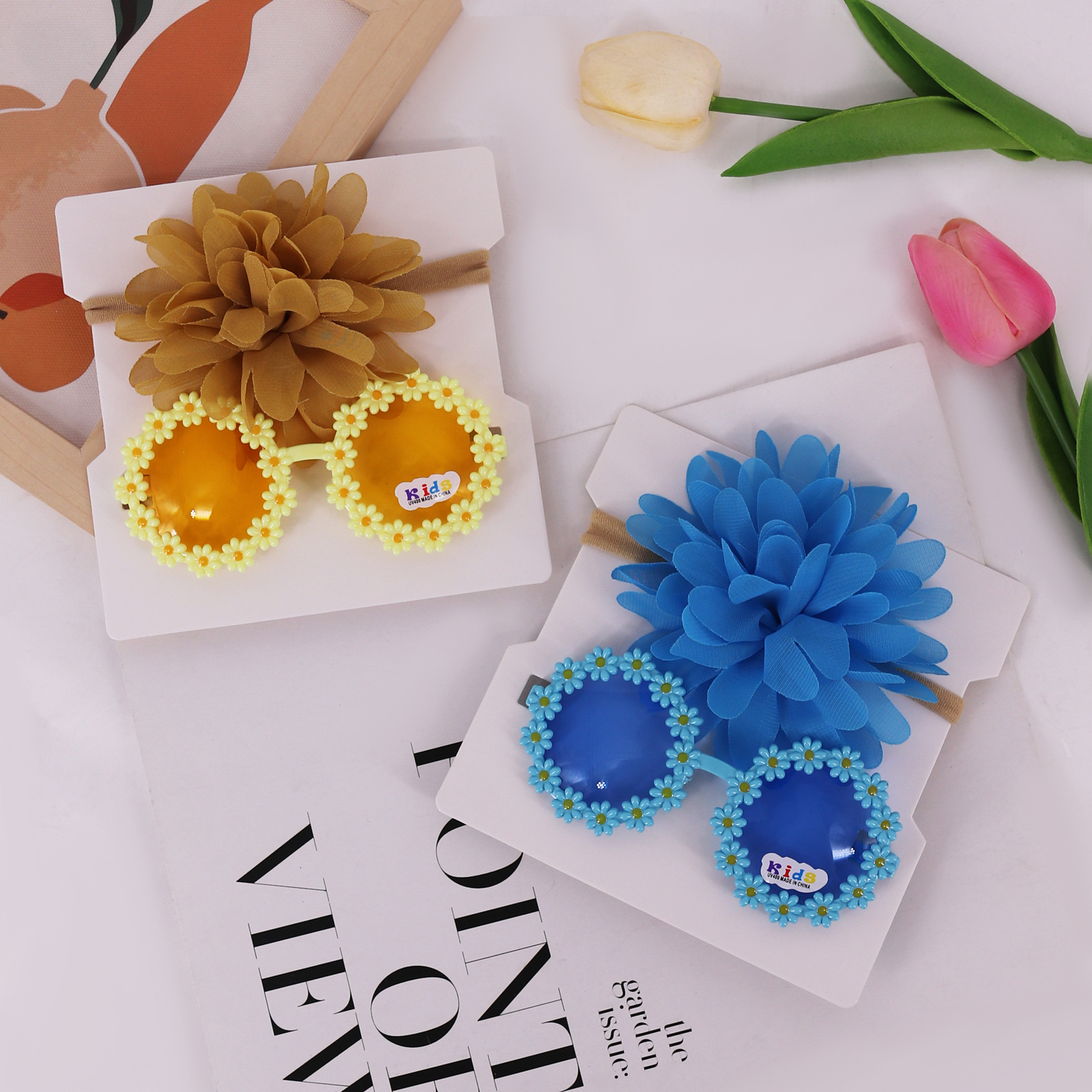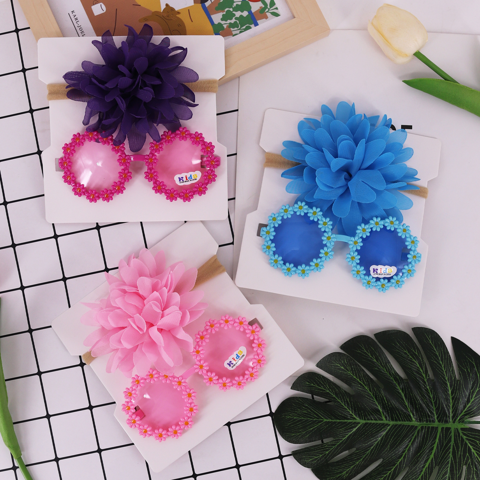 어린이 선글라스 레이스 활 헤어 밴드 세트 야외 여행 헤어 액세서리 선글라스 세트