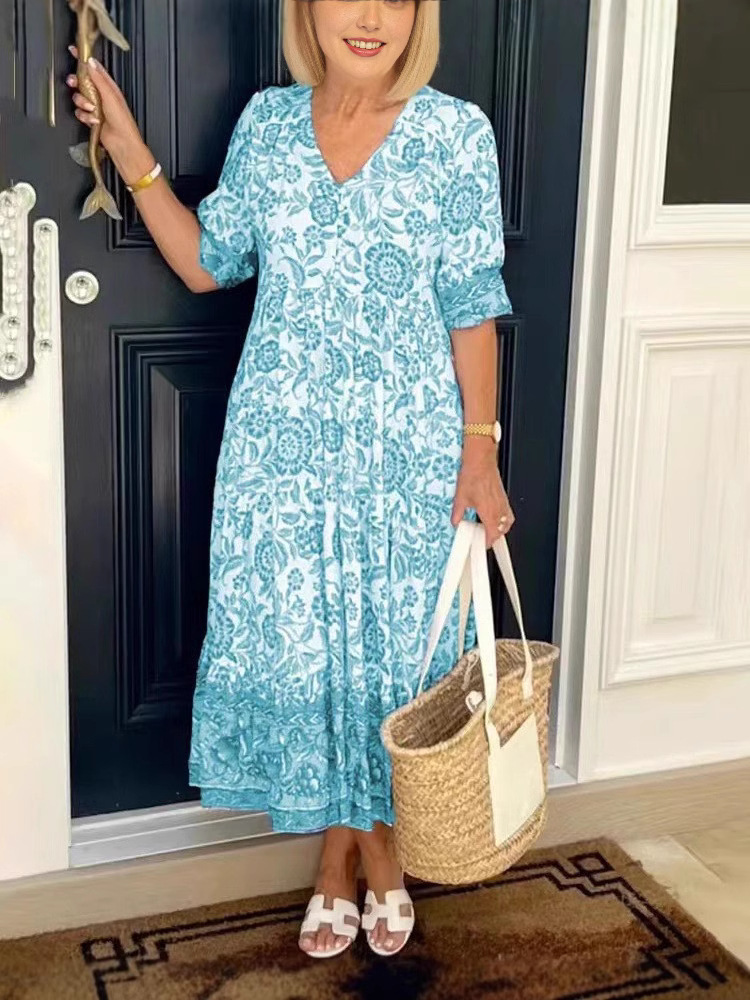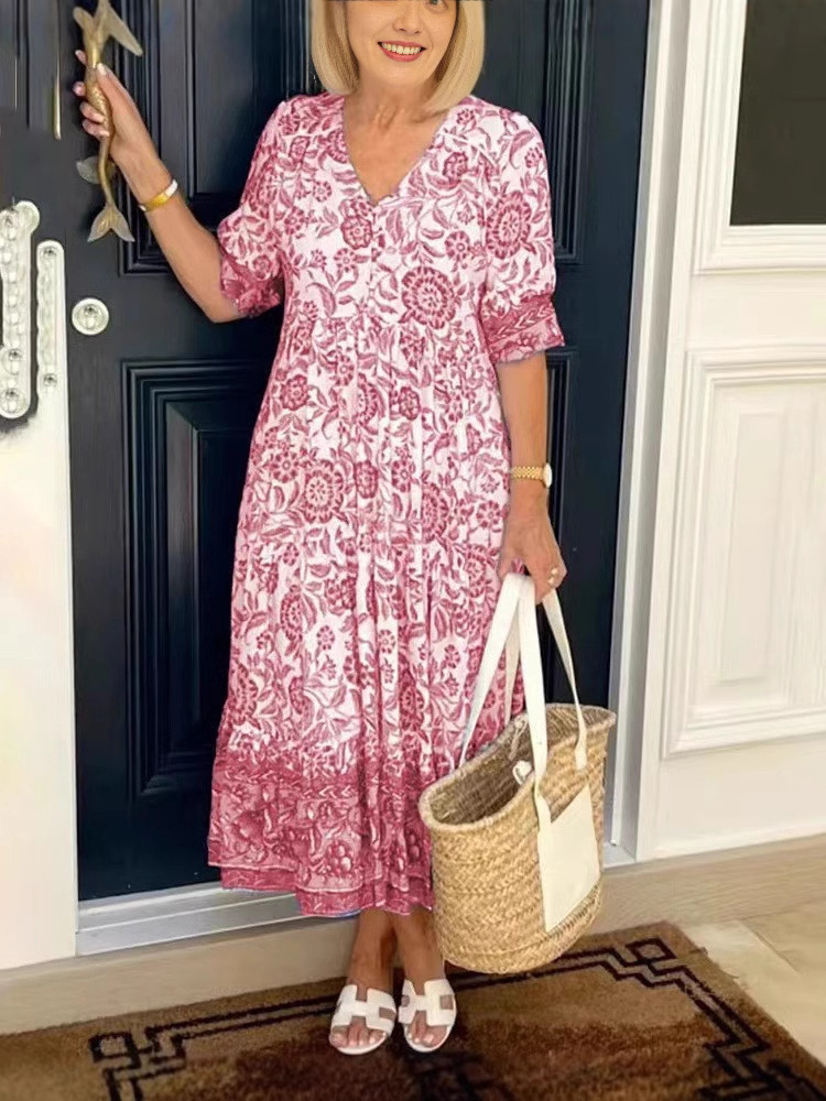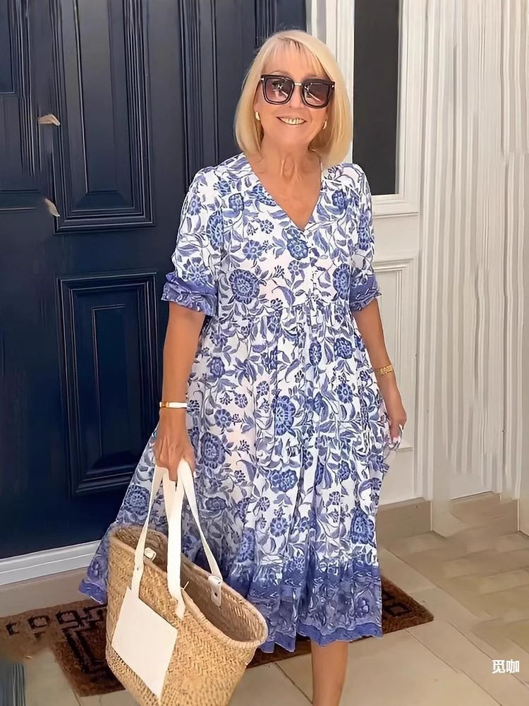 2025 새로운 대형 슈퍼 요정 v 넥 꽃 드레스 해변 휴가 해변 드레스 루즈하고 다재다능한 롱 스커트