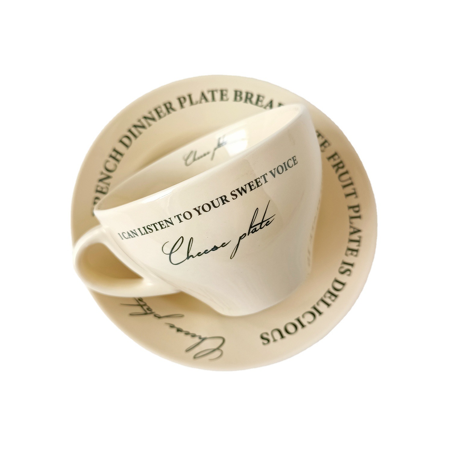 한국 인 스타일 프리미엄 크림 빈티지 프랑스 커피 컵과 접시 아침 식사 컵과 접시 오후 차 세라믹 식기
