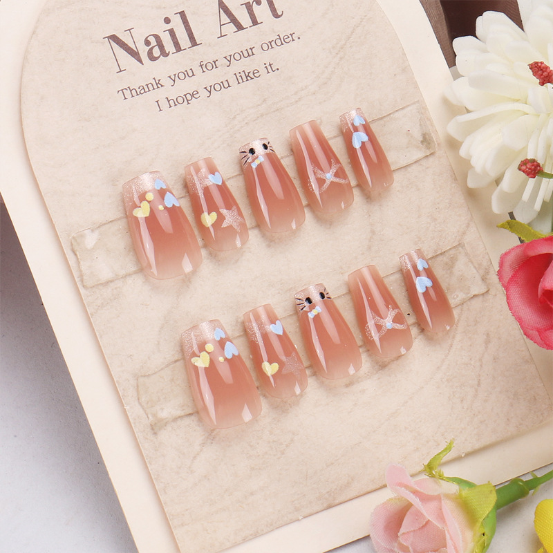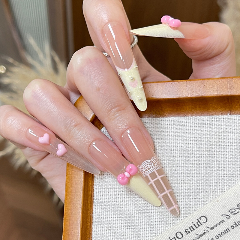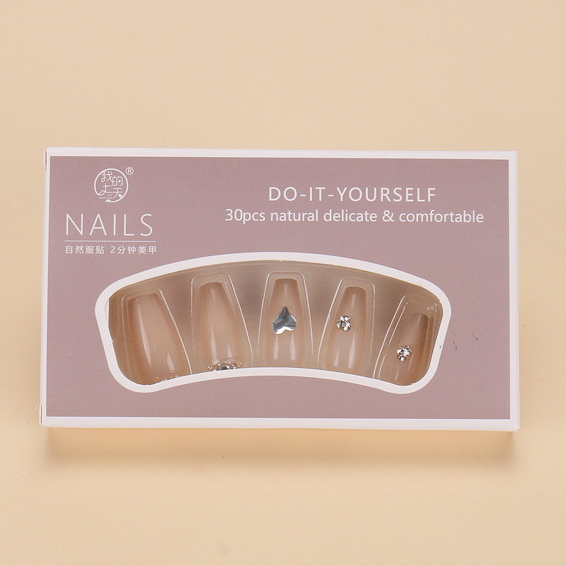 네일 아트 완제품 도매 긴 우유 흰색 프랑스 유리 사랑 네일 패치 이동식 가짜 손톱 착용