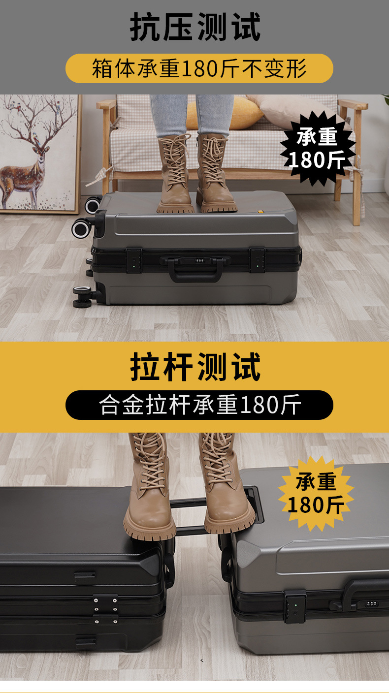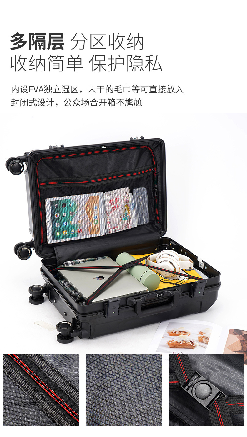 여성용 수하물 가방 2025 새로운 자동 범용 휠 강력하고 내구성이 뛰어난 대용량 알루미늄 프레임 남성용 비밀번호 트롤리 가방