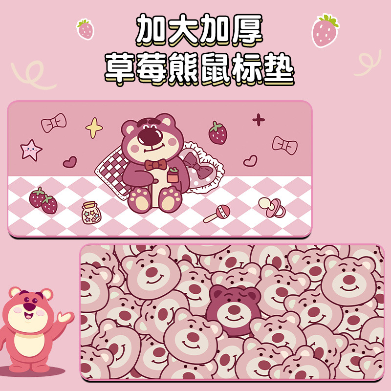 만화 애니메이션 딸기 곰 마우스 매트 게임 매트 대형 컴퓨터 테이블 매트 정밀 잠금 가장자리 책상 매트 미끄럼 방지 매트