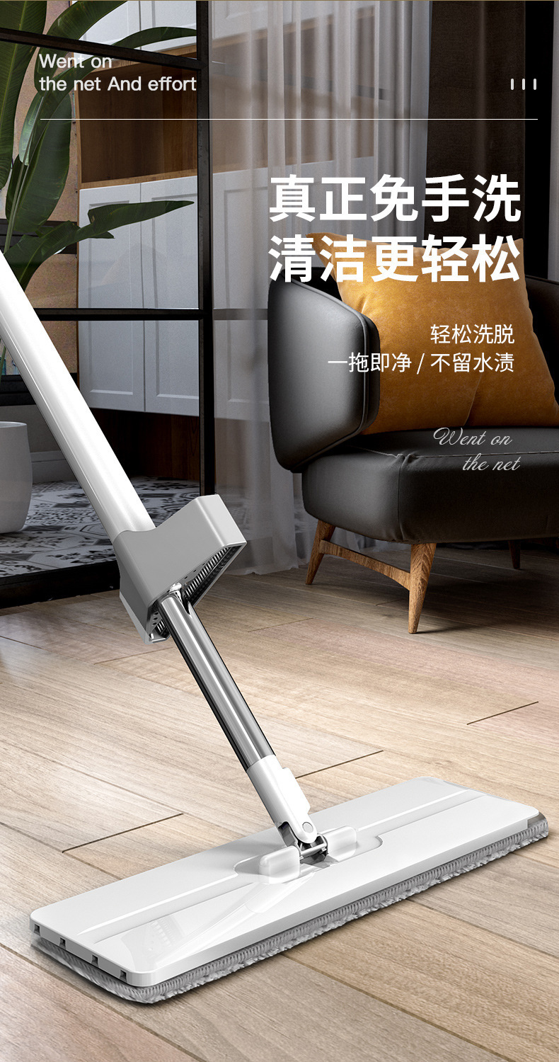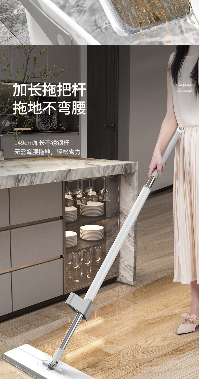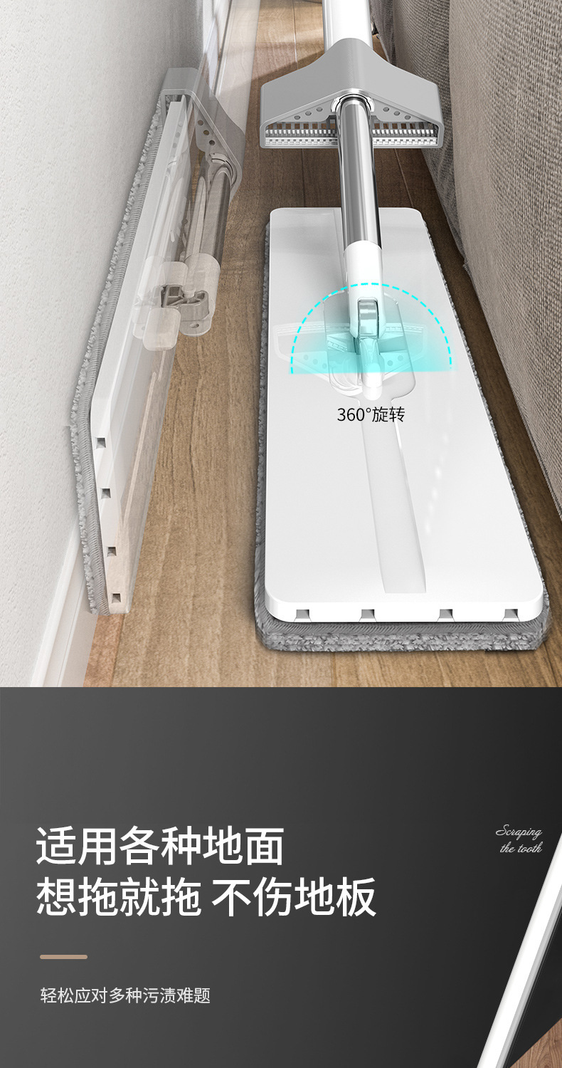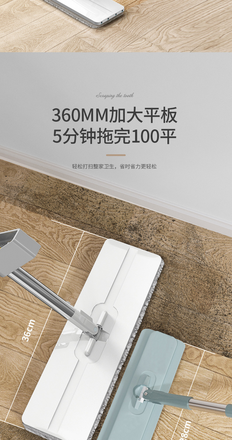 인터넷 유명 인사 핸즈프리 게으른 걸레 스테인레스 스틸 가정용 플랫 걸레 36cm 습식 및 건식 이중 사용 스크래핑 걸레