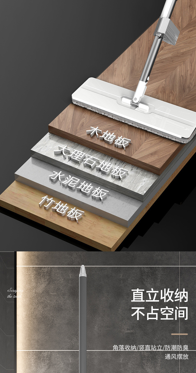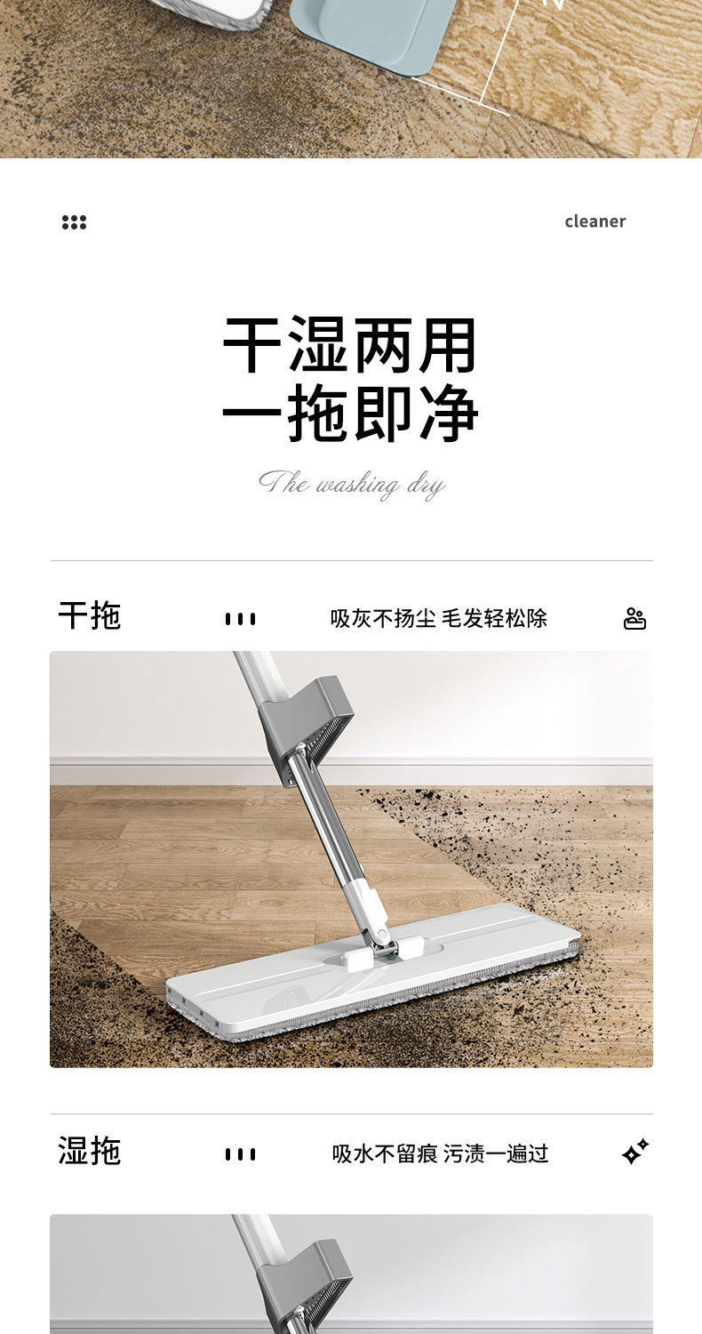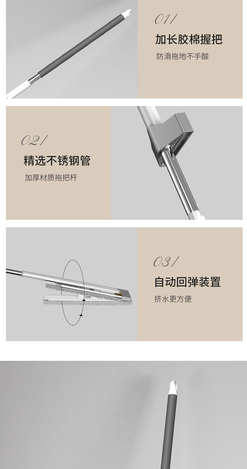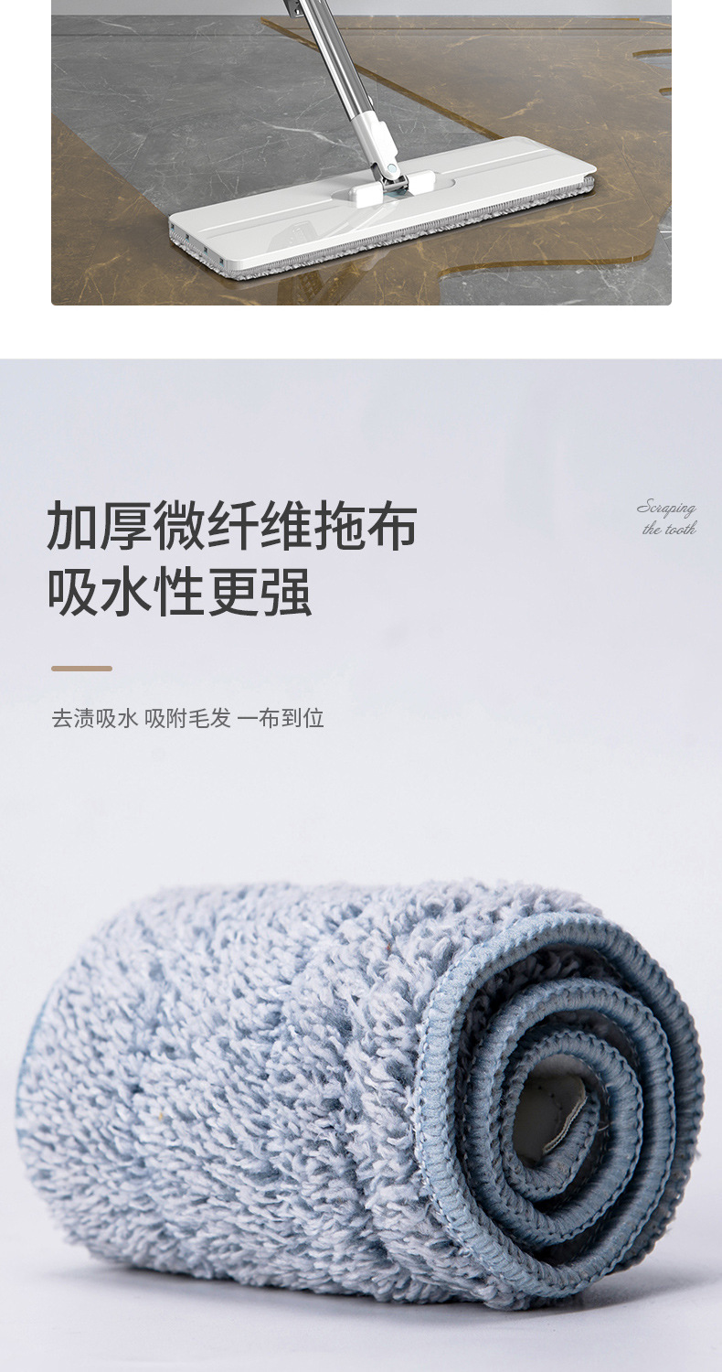 인터넷 유명 인사 핸즈프리 게으른 걸레 스테인레스 스틸 가정용 플랫 걸레 36cm 습식 및 건식 이중 사용 스크래핑 걸레