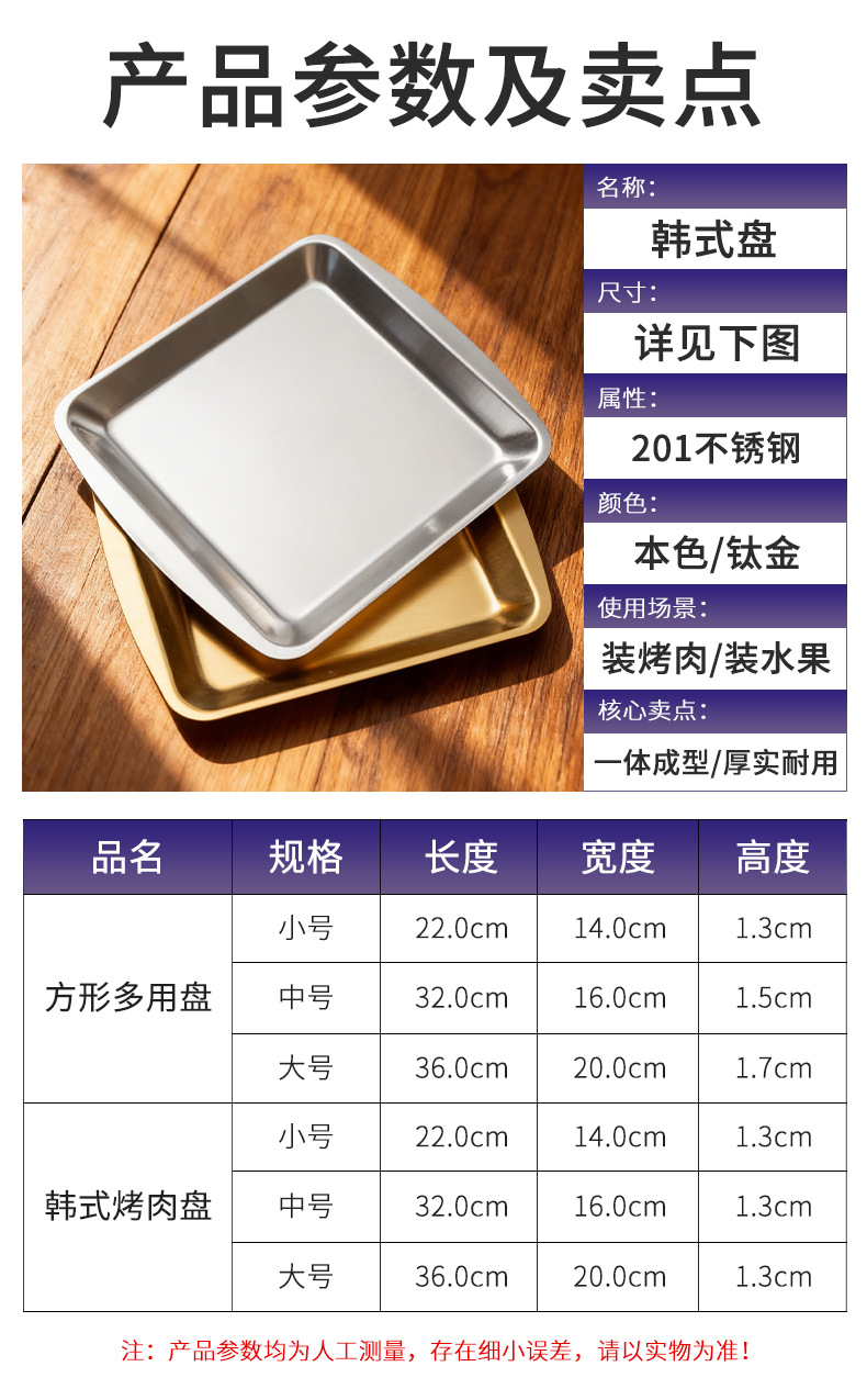 바베큐 플레이트 스테인리스 접시 고급스러운 트레이 직사각형 304 식기 바베큐 플레이트 인스 스타일 식기 테이블용