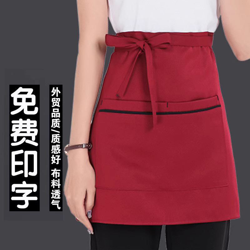 작은 앞치마 여성 반 길이 인쇄 로고 한국 패션 주방 허리 레스토랑 작업복 과일 가게 인쇄