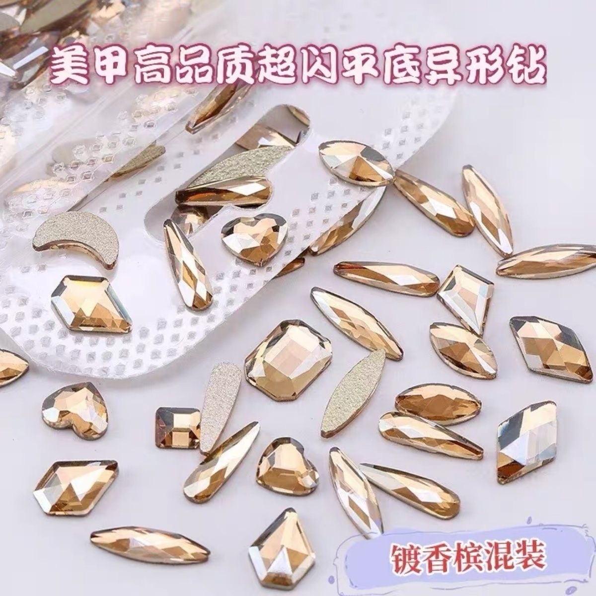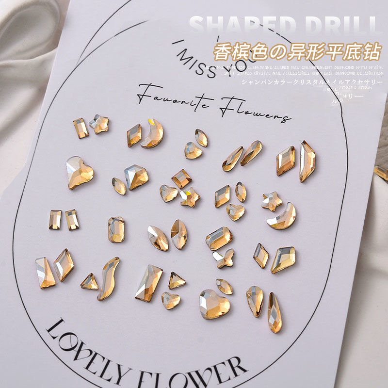 미니 스몰 사이즈 샴페인 플랫 바닥 특수 모양의 드릴 그물 레드 폭발 슈퍼 플래시 물방울 사랑 k9 유리 드릴 네일 아트 쥬얼리