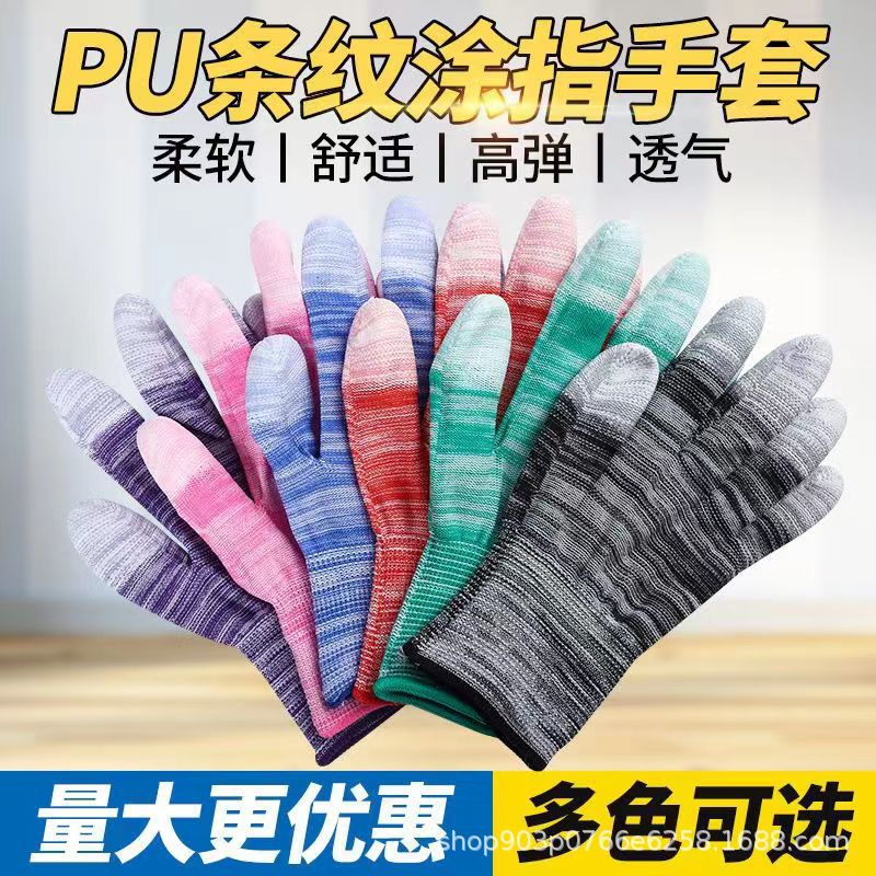 PU 손가락 코팅 장갑 얇은 나일론 내마모성 미끄럼 방지 손가락 코팅 장갑 현장 장갑 얇은 장갑 노동 보호 작업