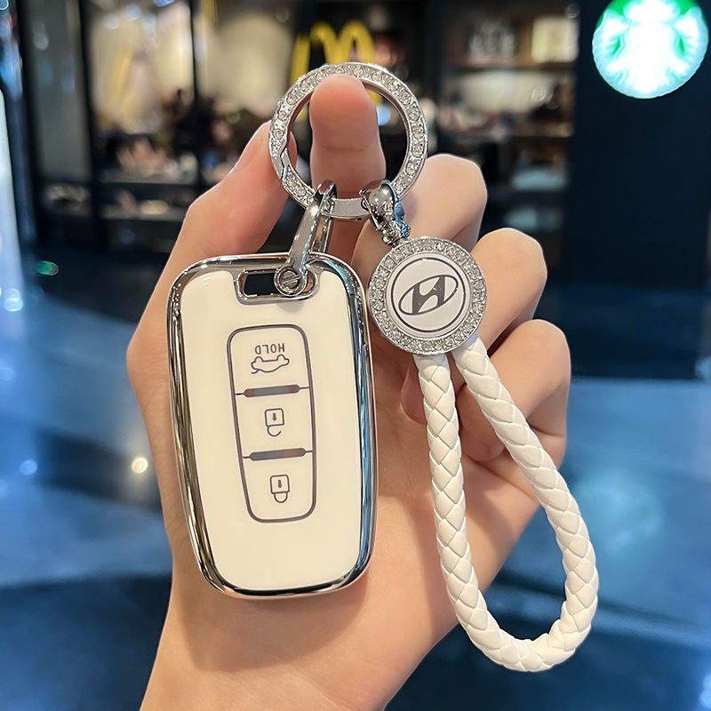 현대 D-스마트 3 키 [화이트 싱글 쉘] + 다이아몬드 로고 꼰 로프