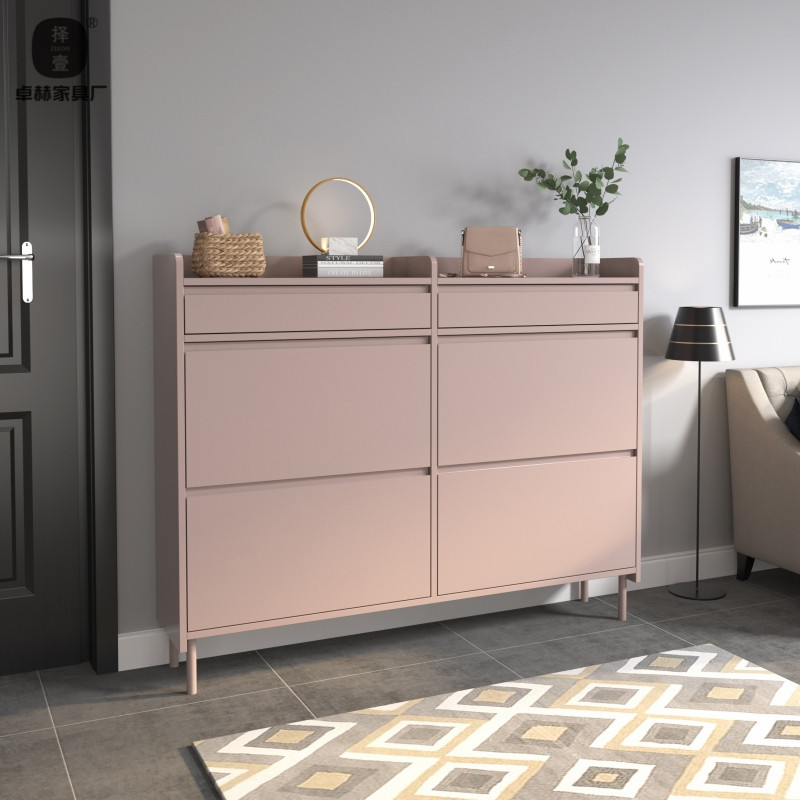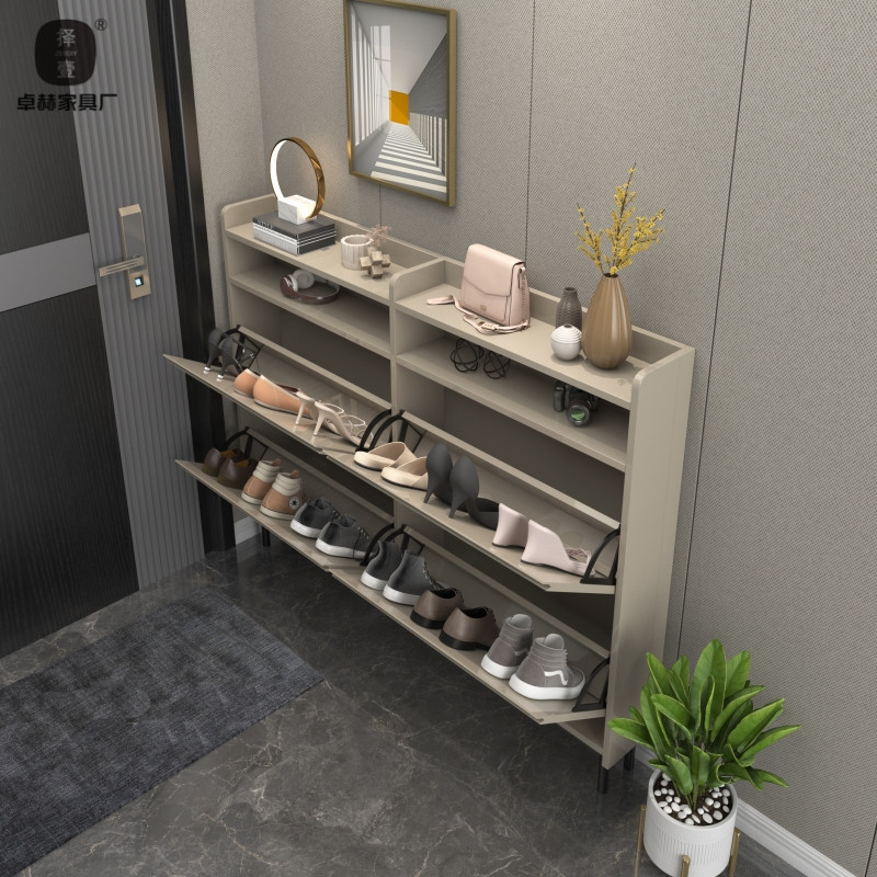 Zhuo Heyi 스타일 베이킹 페인트 크림 노란색 가정용 신발 캐비닛 초박형 및 매우 좁은 가정용 출입구 아래 입구 캐비닛에 합류