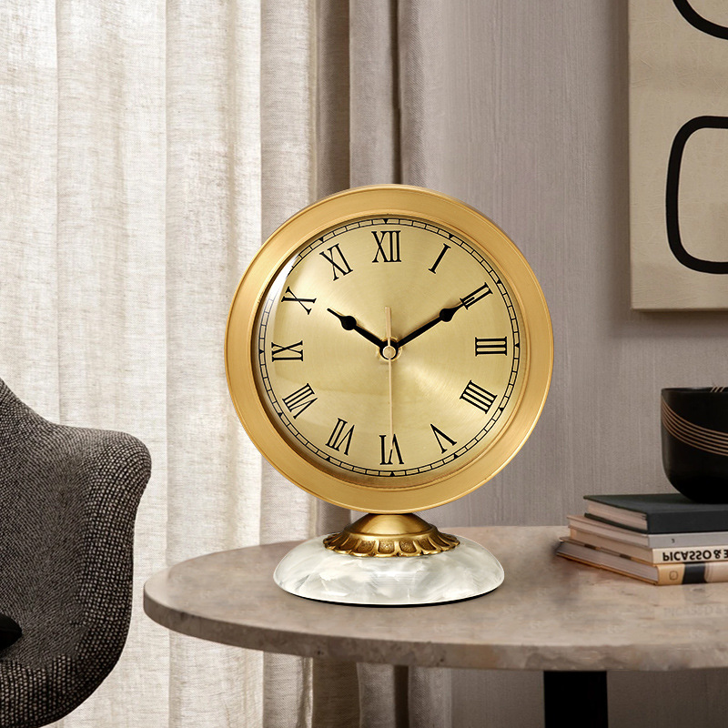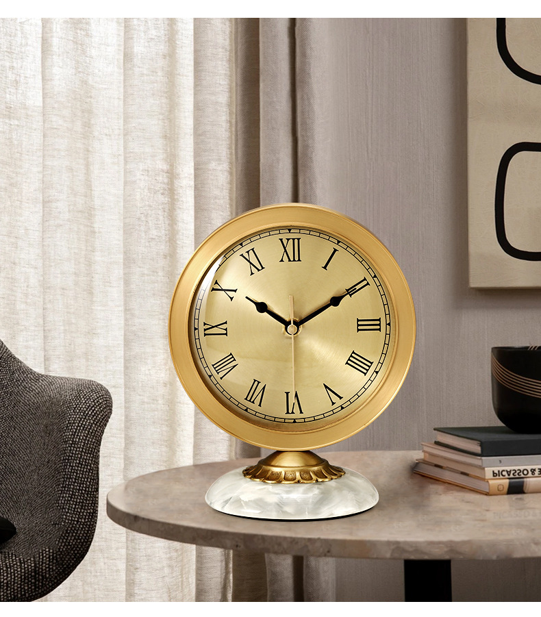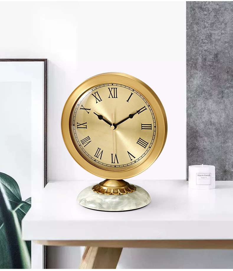 가벼운 럭셔리 황동 책상 시계 홈 책상 시계 연구 고전적인 창조적 인 책상 시계 장식품 장식 석영 시계 1019