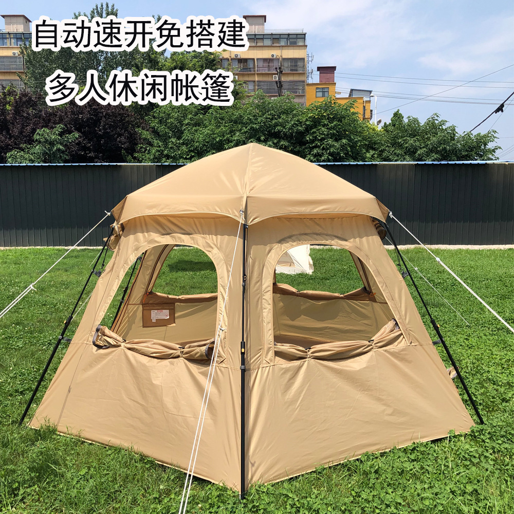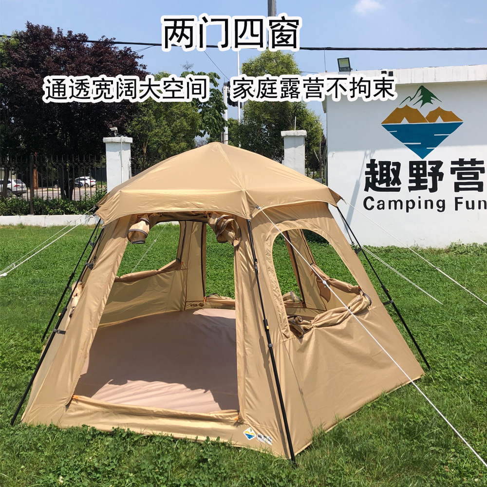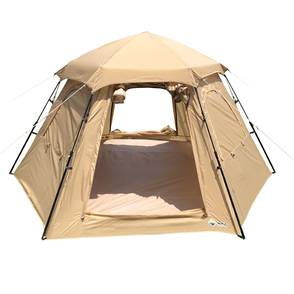 야외 캠핑 텐트 가족 피크닉 2 층 텐트 자동 퀵 오픈 육각 텐트