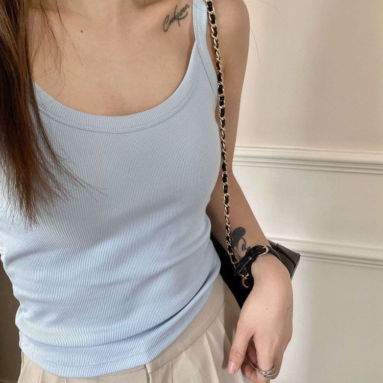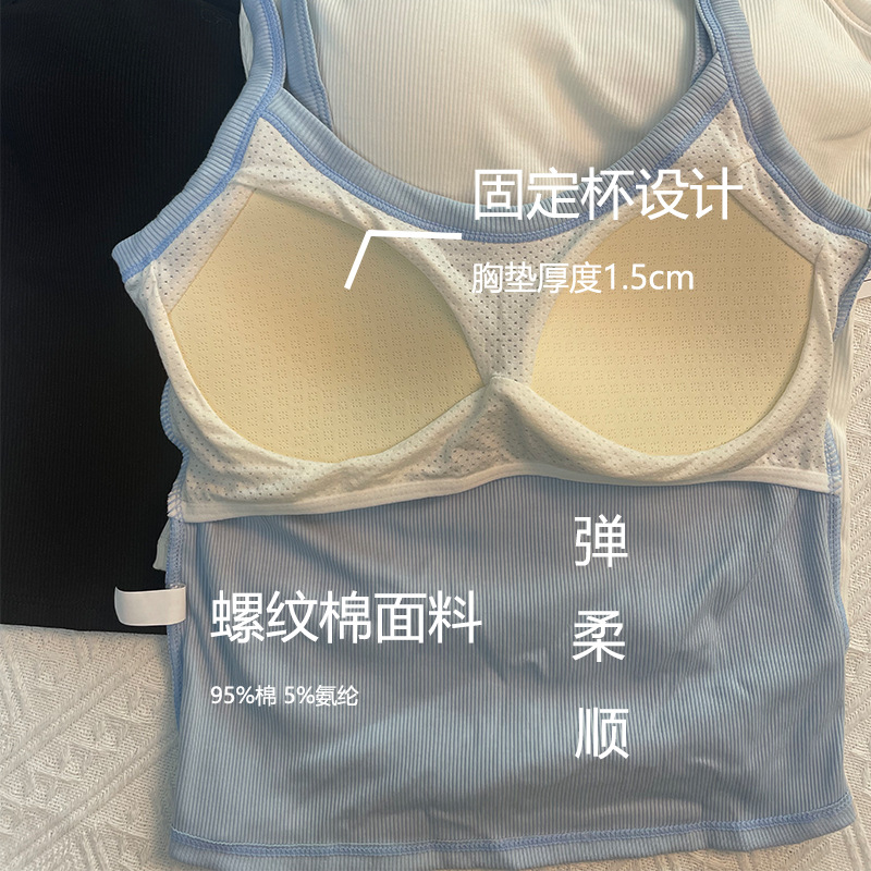 6604 올매치 캐미솔 여성 속옷 여성용 실 면 슬리밍 가슴 패드 고정 컵 내부 탑 올매치