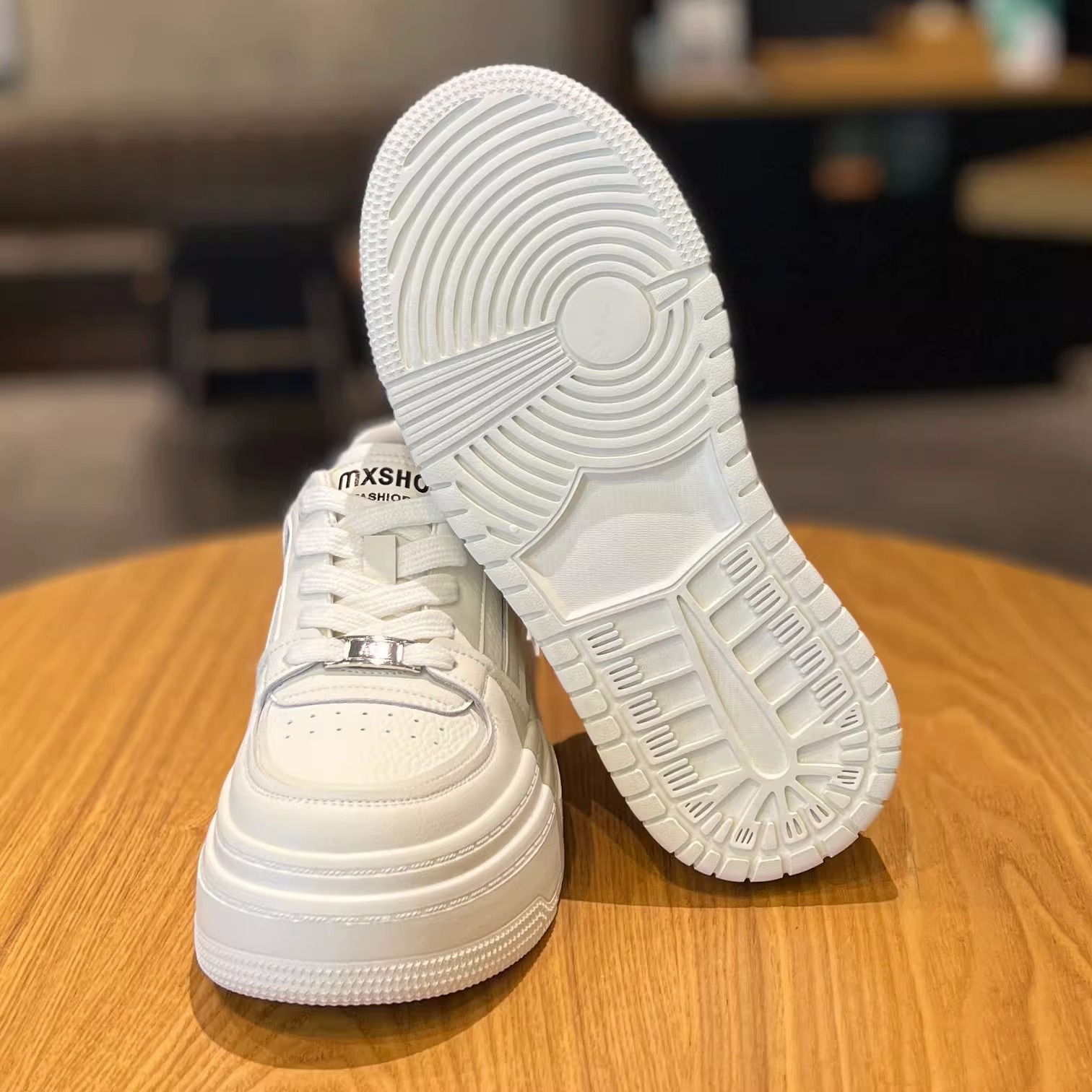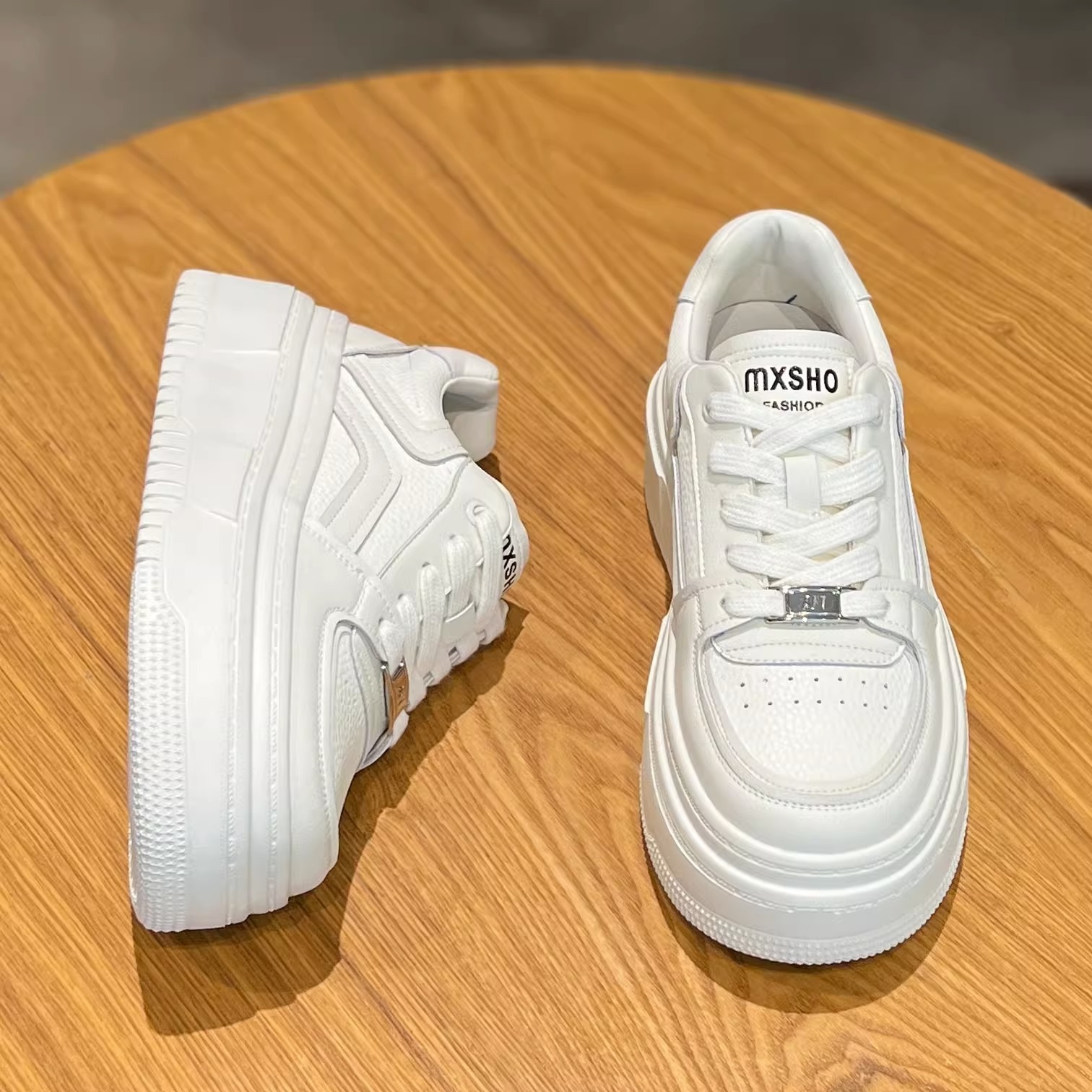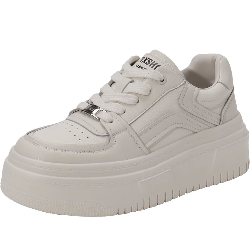 여성을위한 정품 가죽 흰색 신발 2021 봄 여성 신발 새로운 흰색 운동화 두꺼운 단독 키가 작은 캐주얼 신발