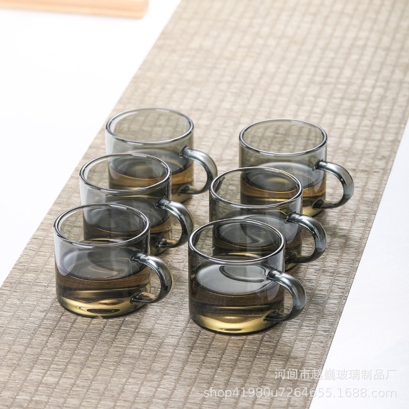 유리 작은 찻잔 차 맛보기 컵 그물 연예인 스모키 그레이 작은 컵 찻그릇 가정용 내열 쿵푸 차 세트 찻잔 세트