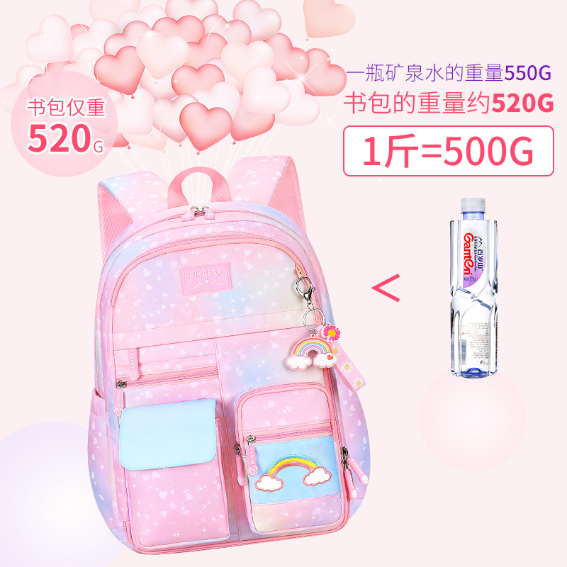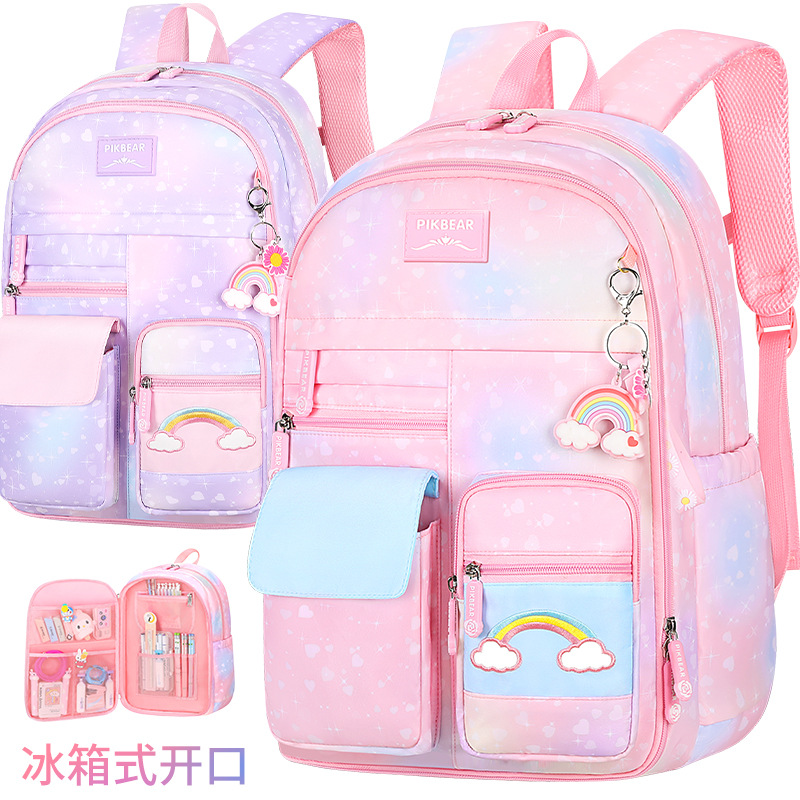 학교 가방 국경 초등학교 가방 소녀 귀여운 무지개 배낭 대용량 측면 개방형 배낭