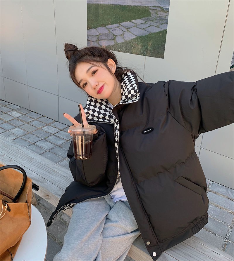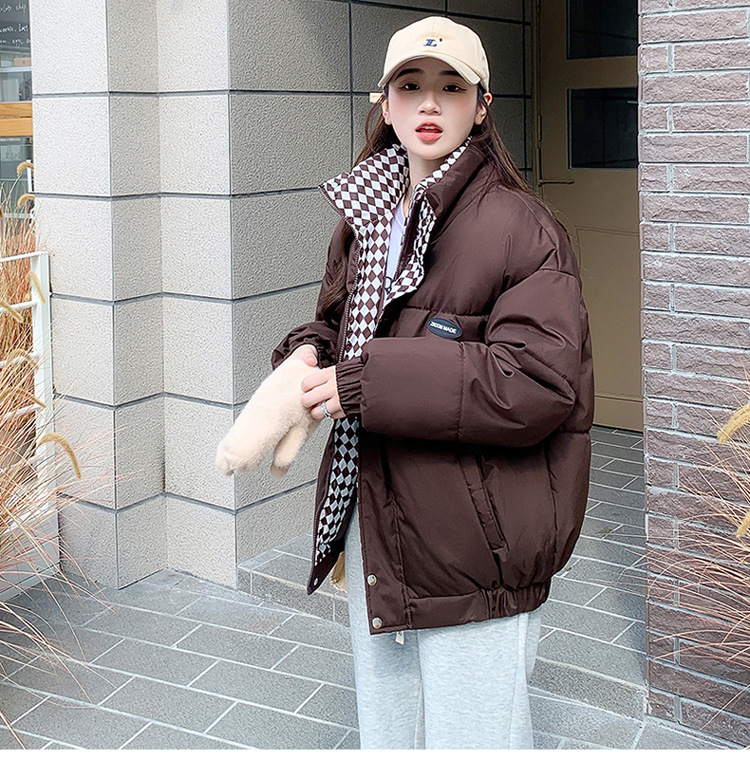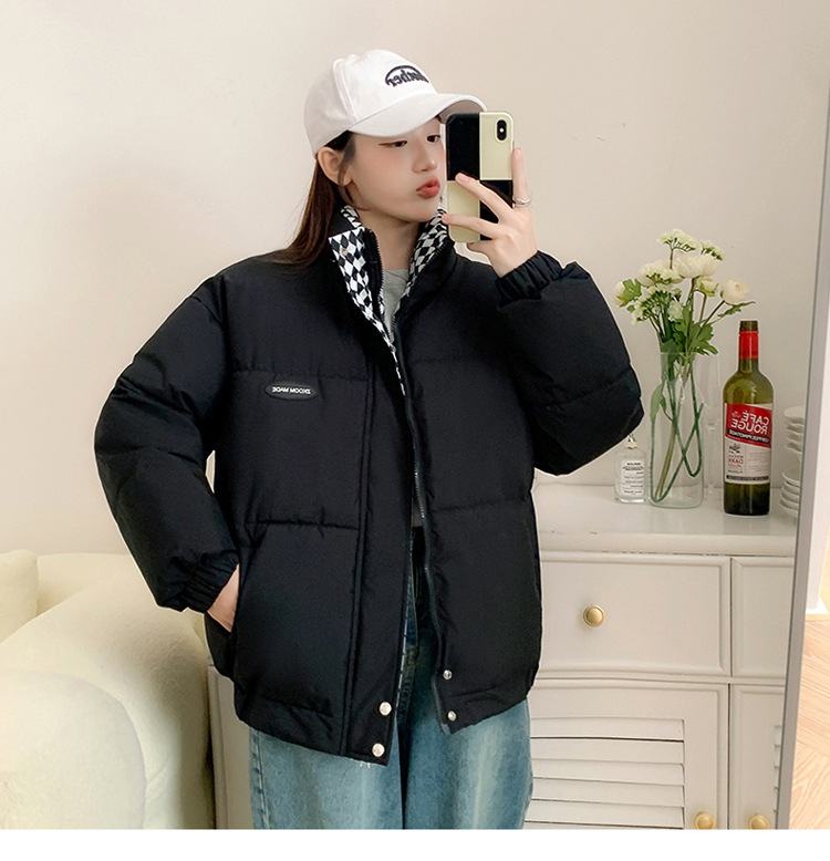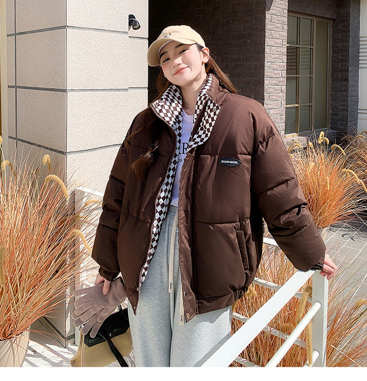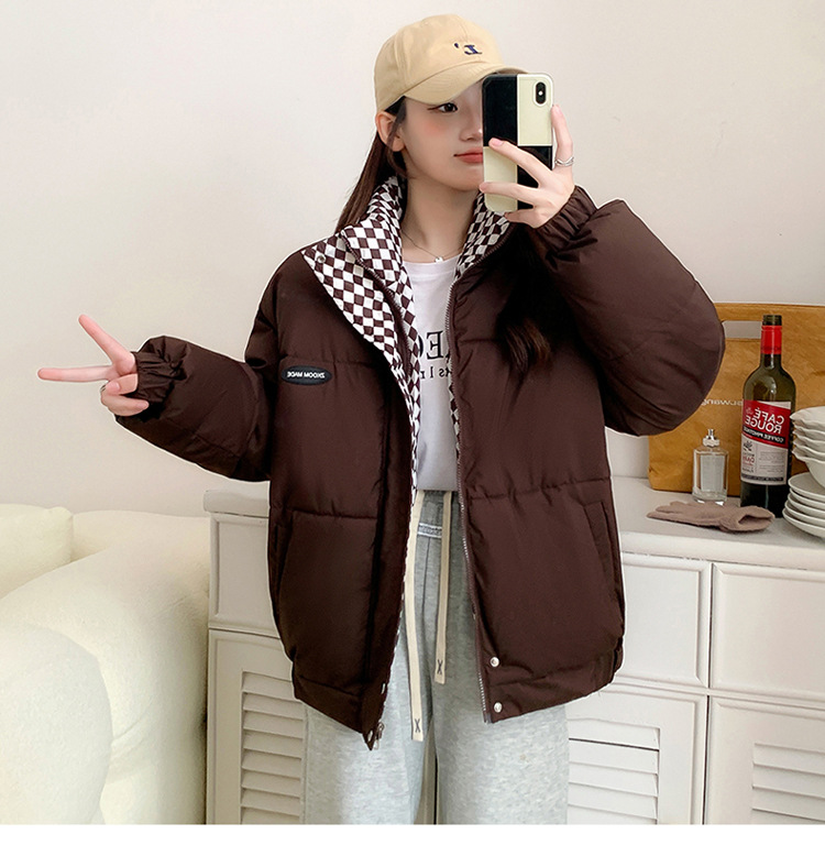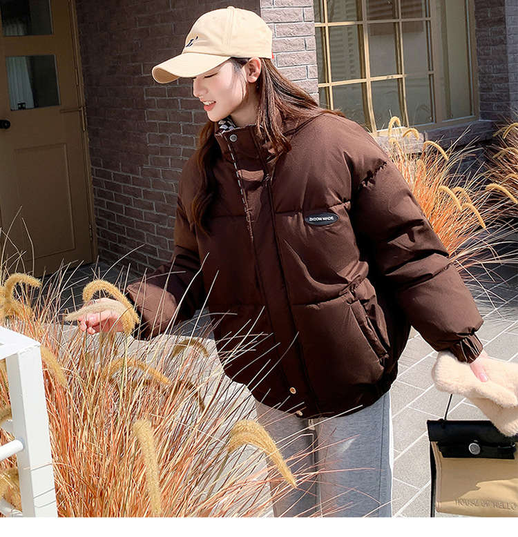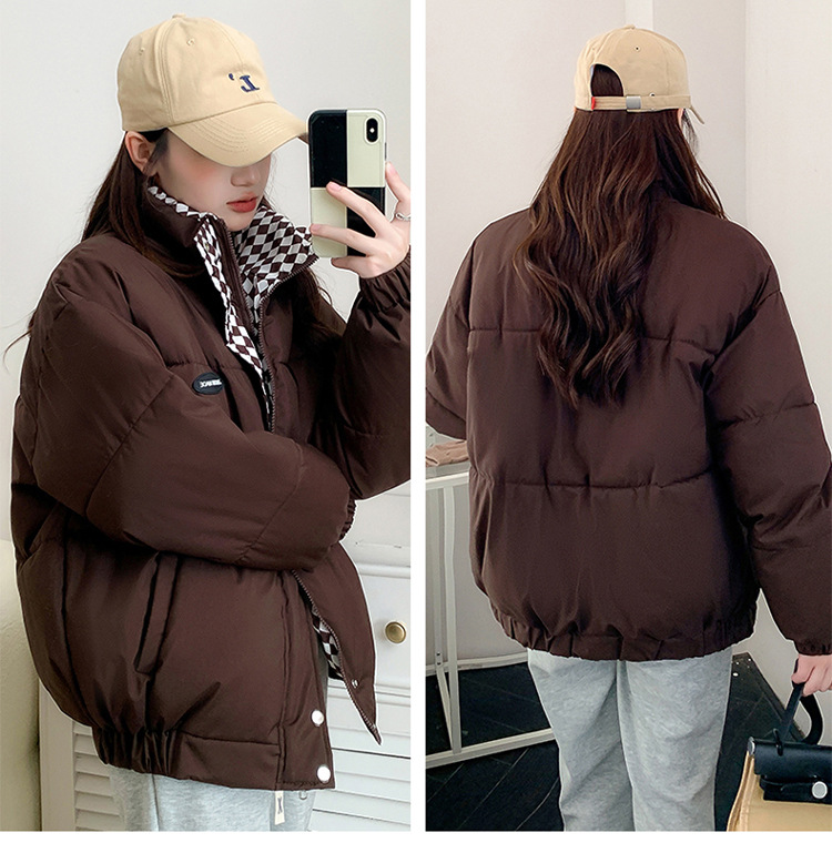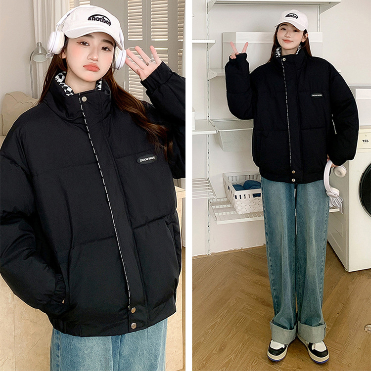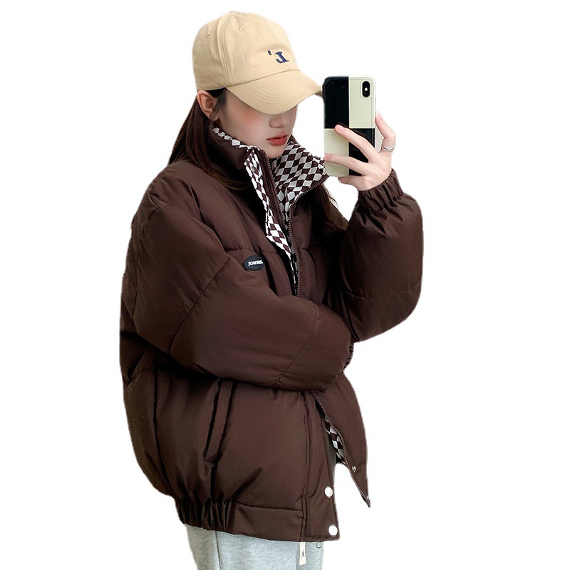 2025 겨울 새로운 스타일 게으른 다운 재킷 여성의 느슨한 유럽과 미국 스타일의 스탠드 칼라 짧은 면화 재킷 두꺼운 빵 배치