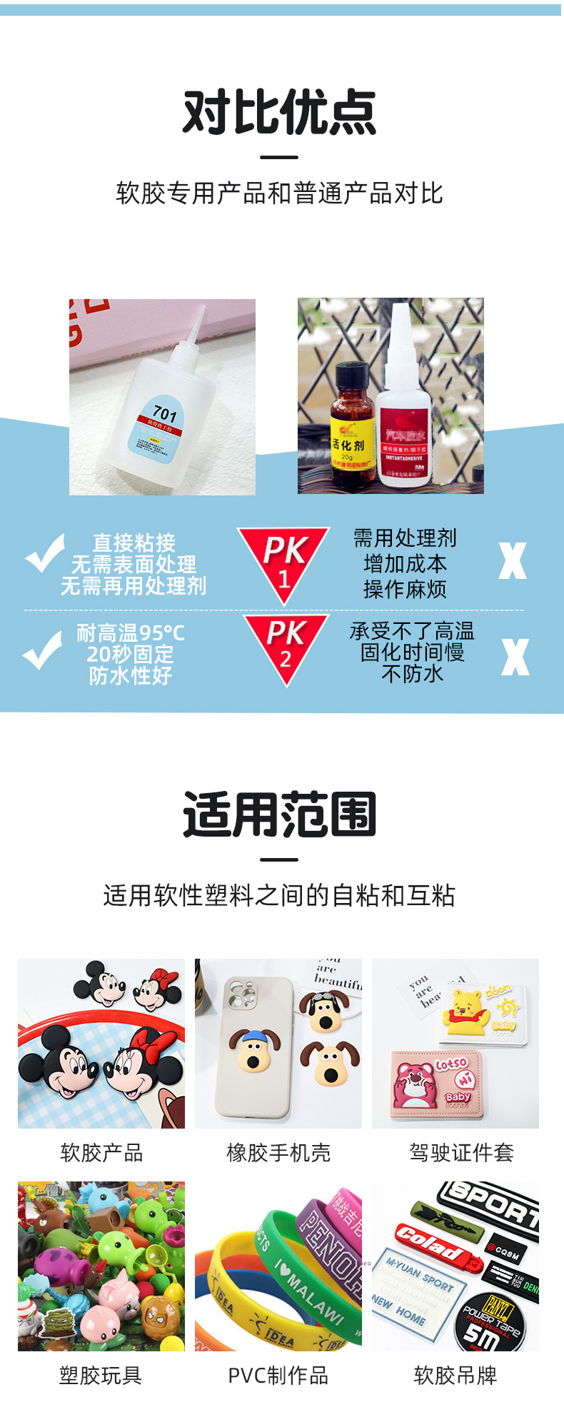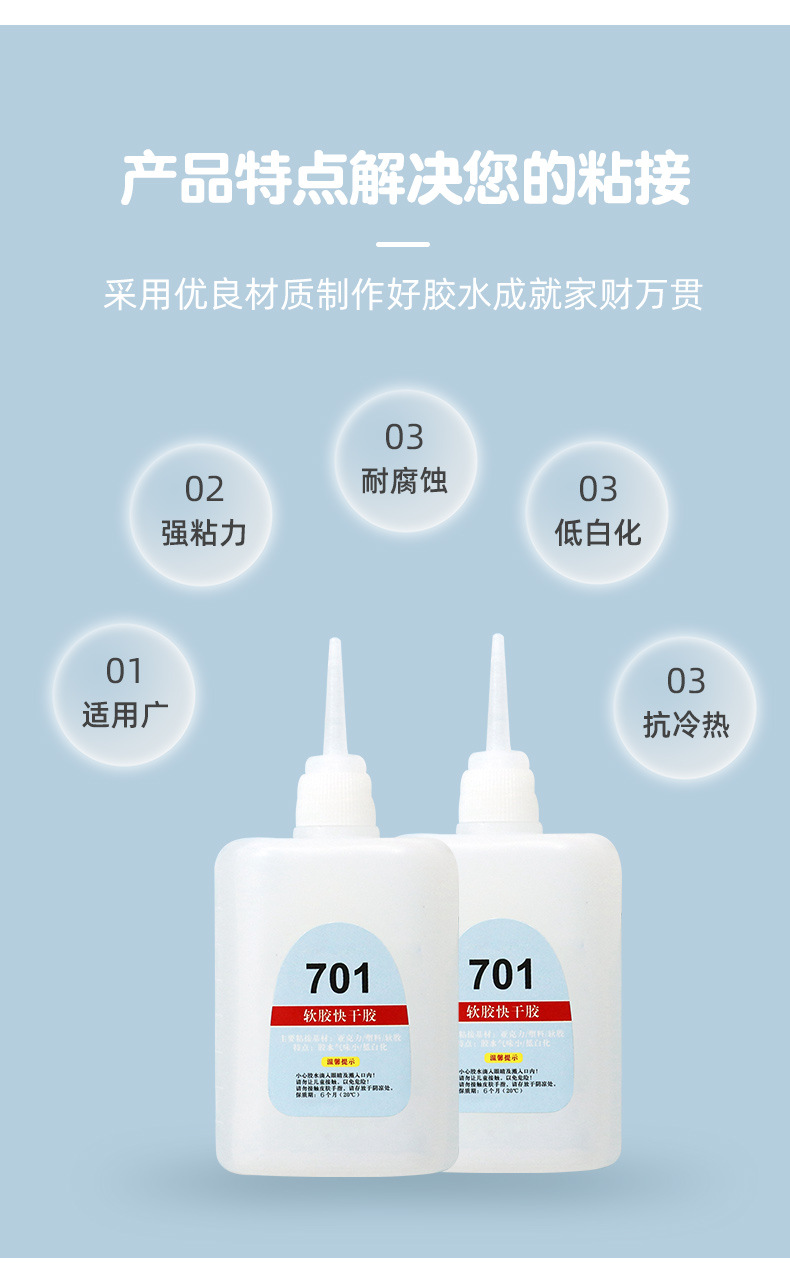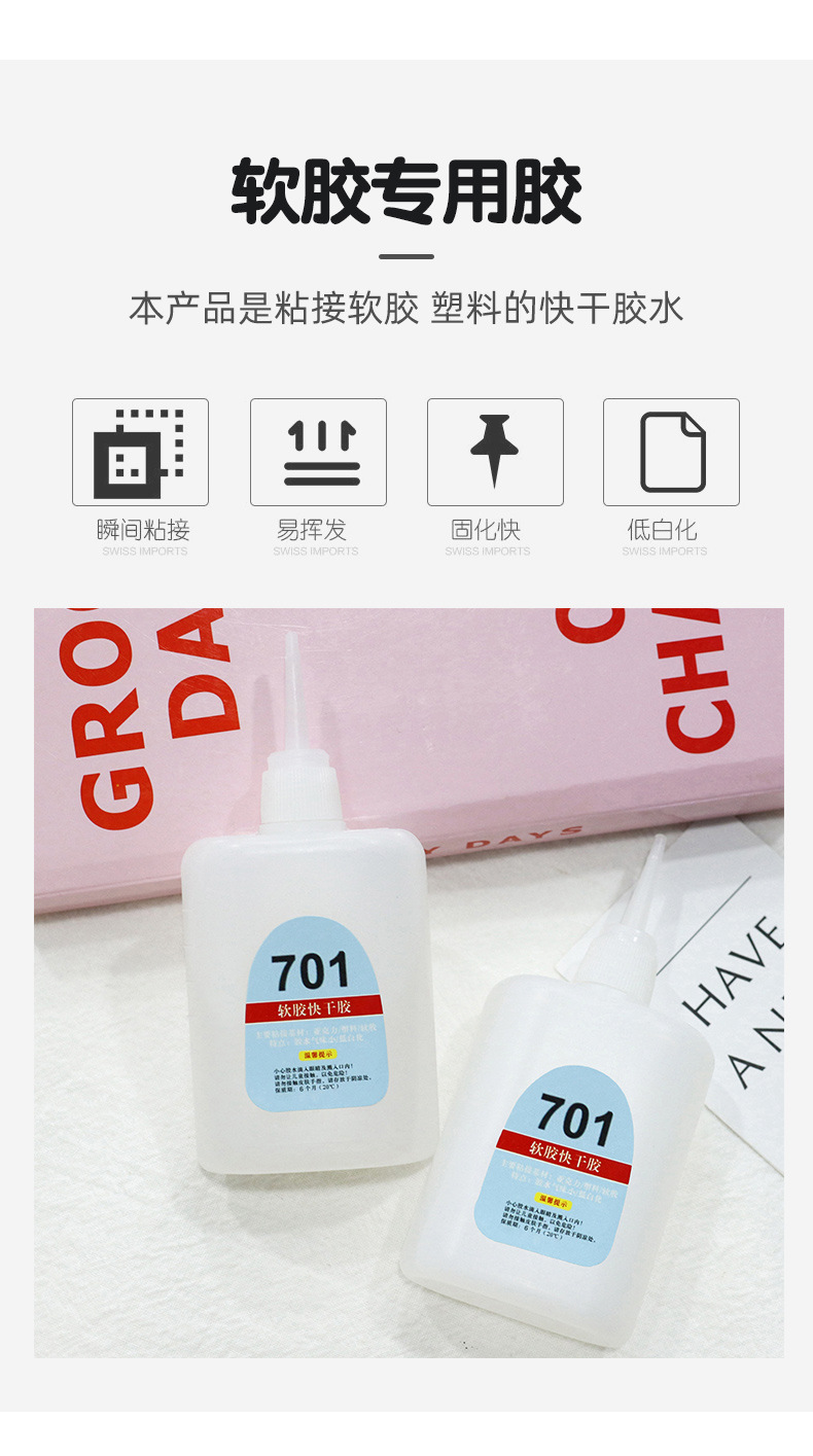 PVC 고무 접착제 701 슈퍼 접착제 502 수지 빠른 건조 낮은 흰색 접착제 부드러운 접착제 아크릴 플라스틱 공예