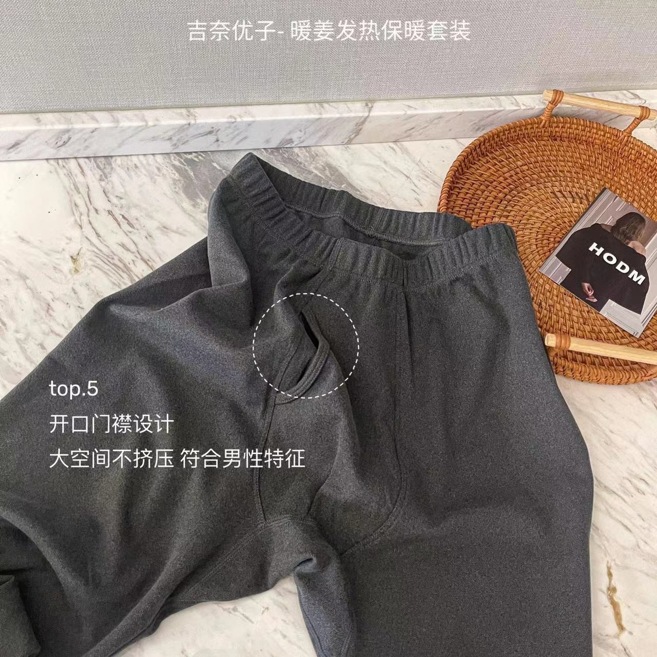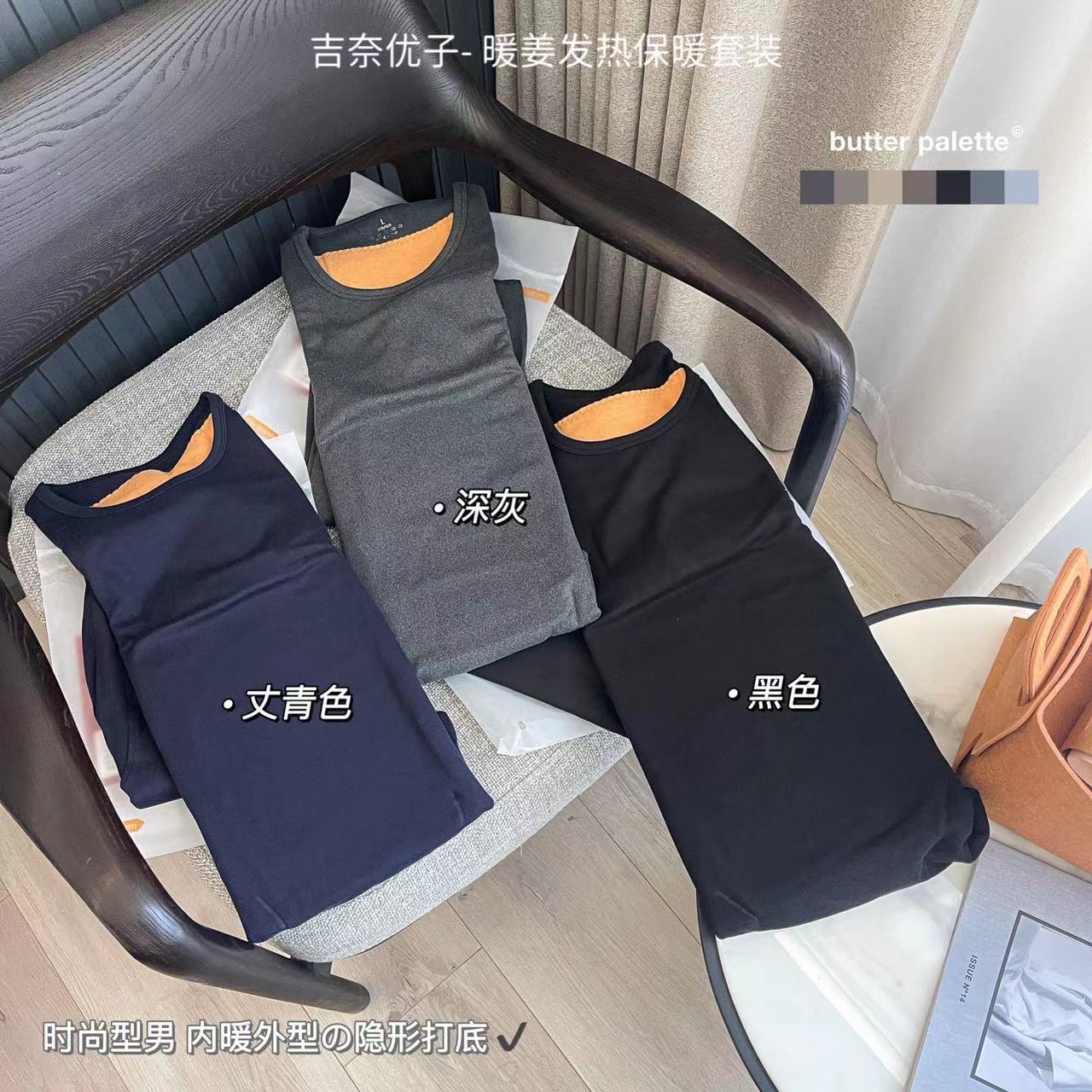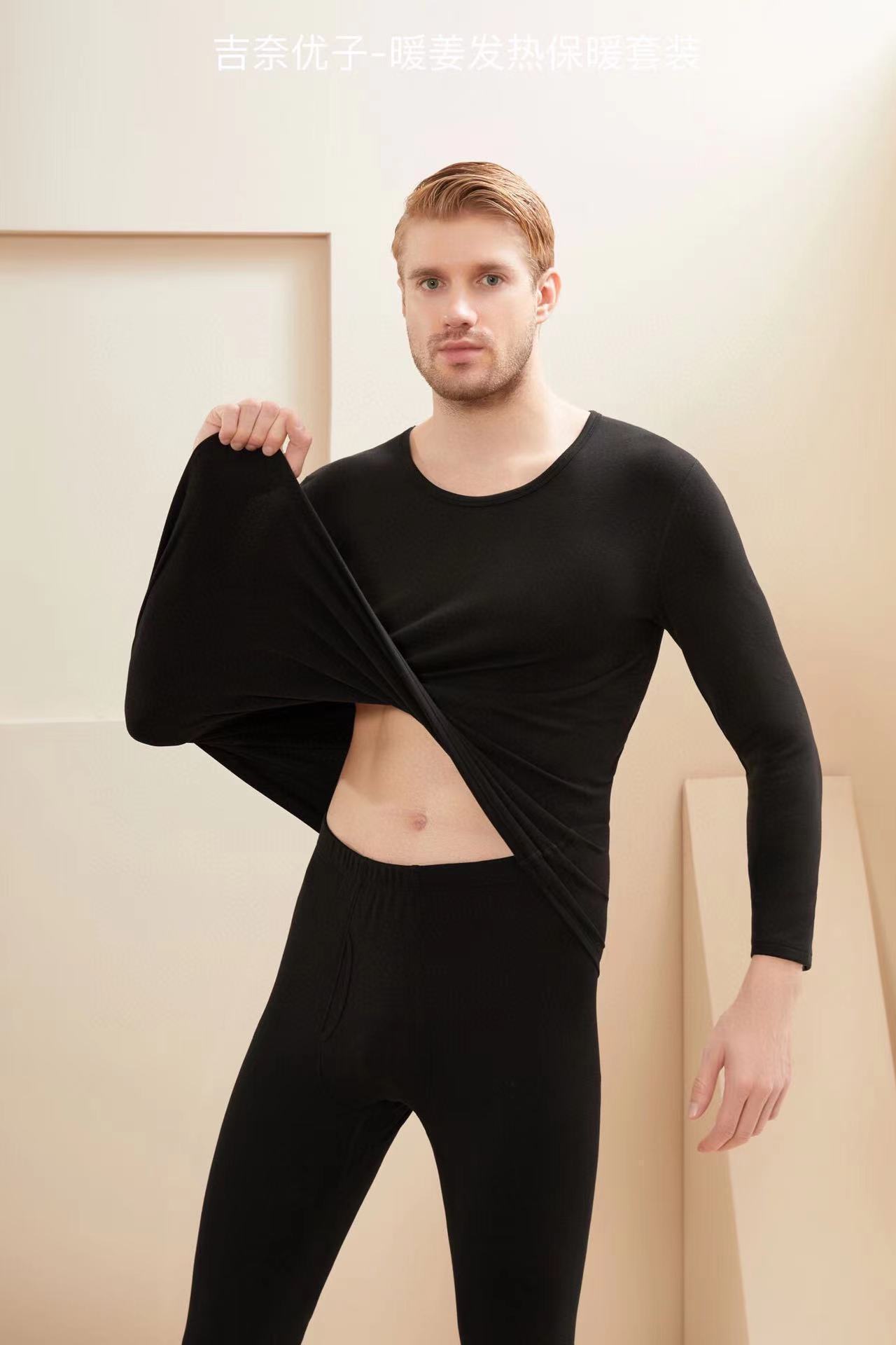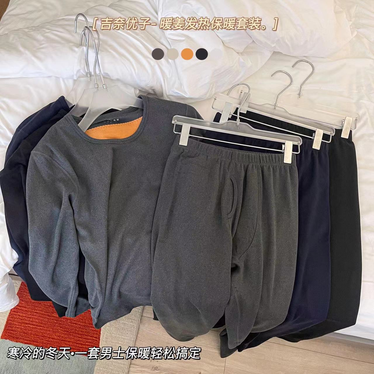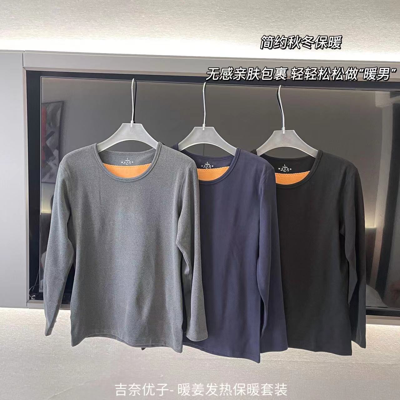 Ginai Youzi 생강 열병 추적 따뜻한 가을 옷과 바지 남자의 따뜻한 다시 벨벳 두꺼운 가을과 겨울 남성의베이스 세트