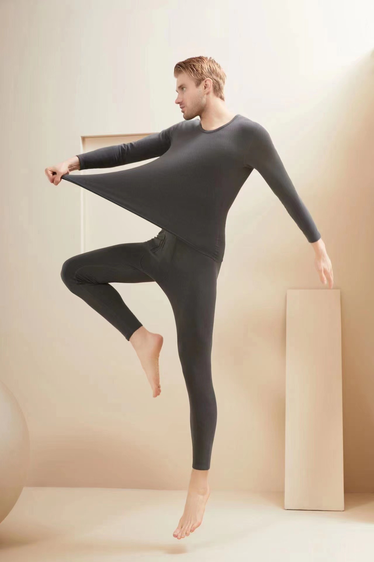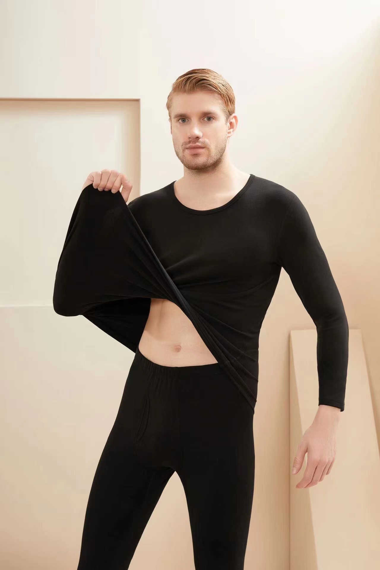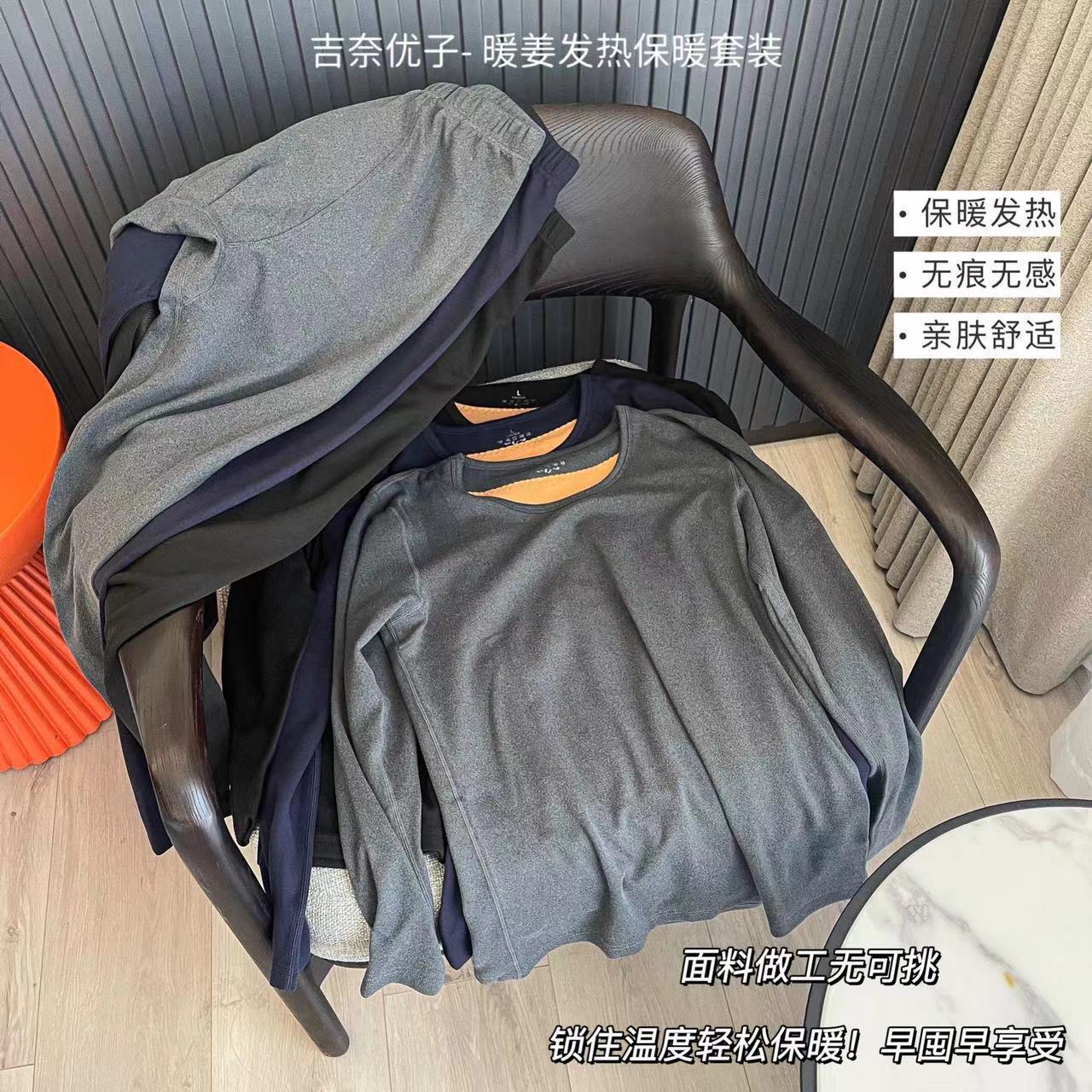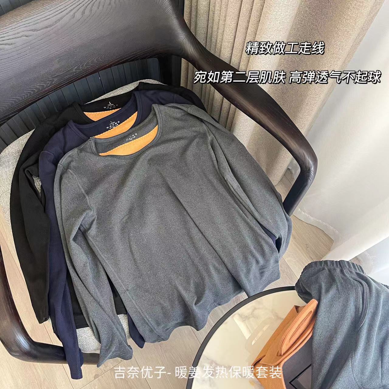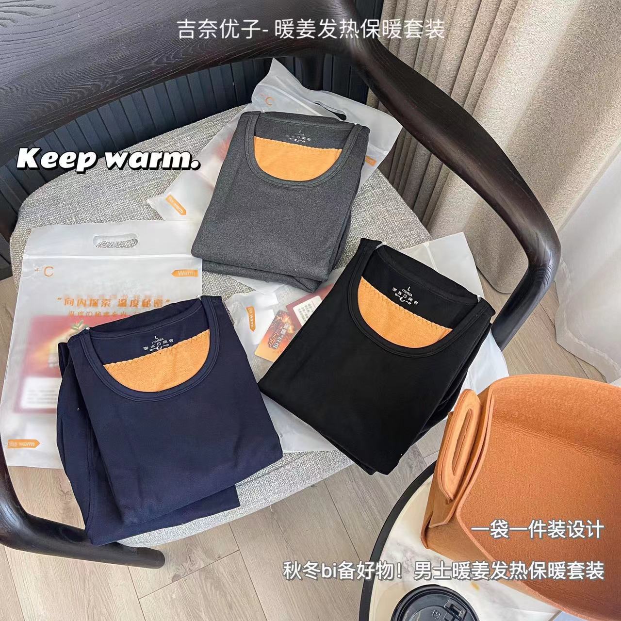Ginai Youzi 생강 열병 추적 따뜻한 가을 옷과 바지 남자의 따뜻한 다시 벨벳 두꺼운 가을과 겨울 남성의베이스 세트
