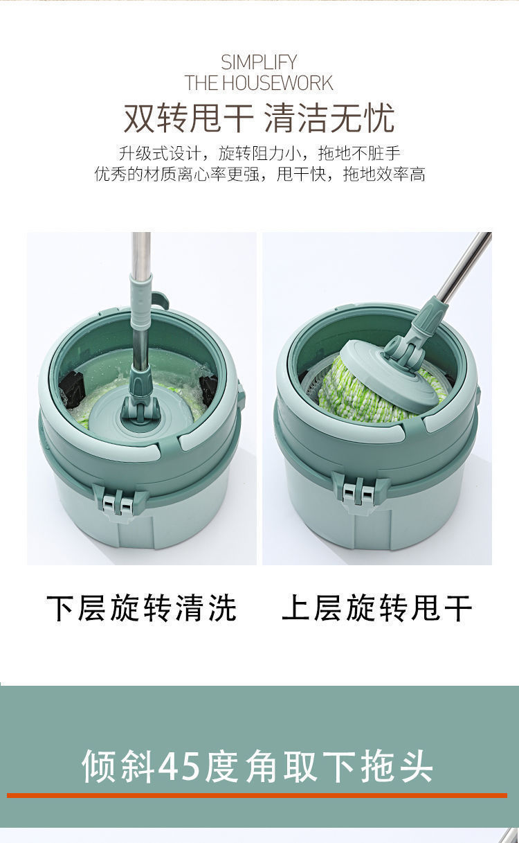 두꺼운 회전 걸레 양동이 단일 양동이 걸레 게으른 걸레 건조 및 습식 이중 사용 손 세척 무료 걸레 좋은 신 걸레 청소