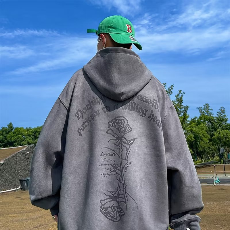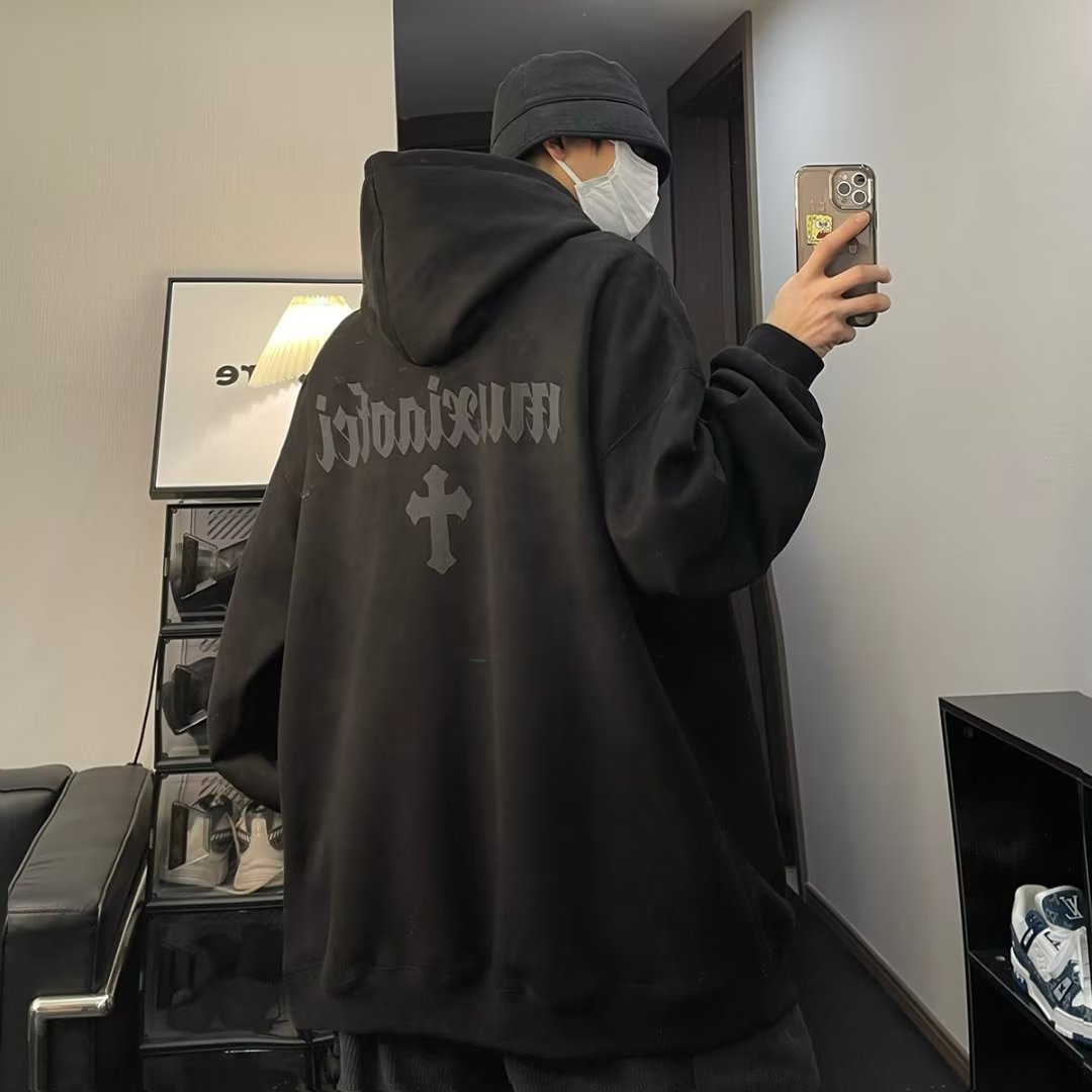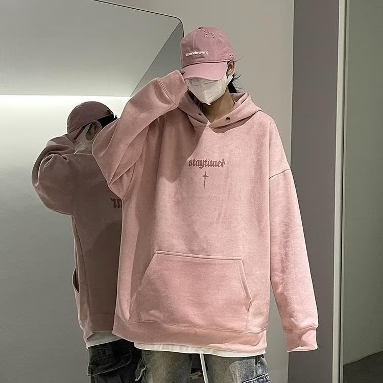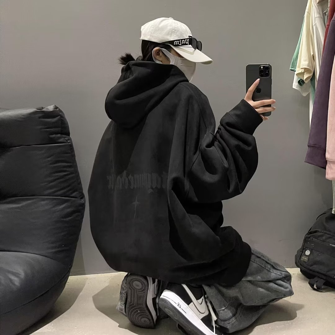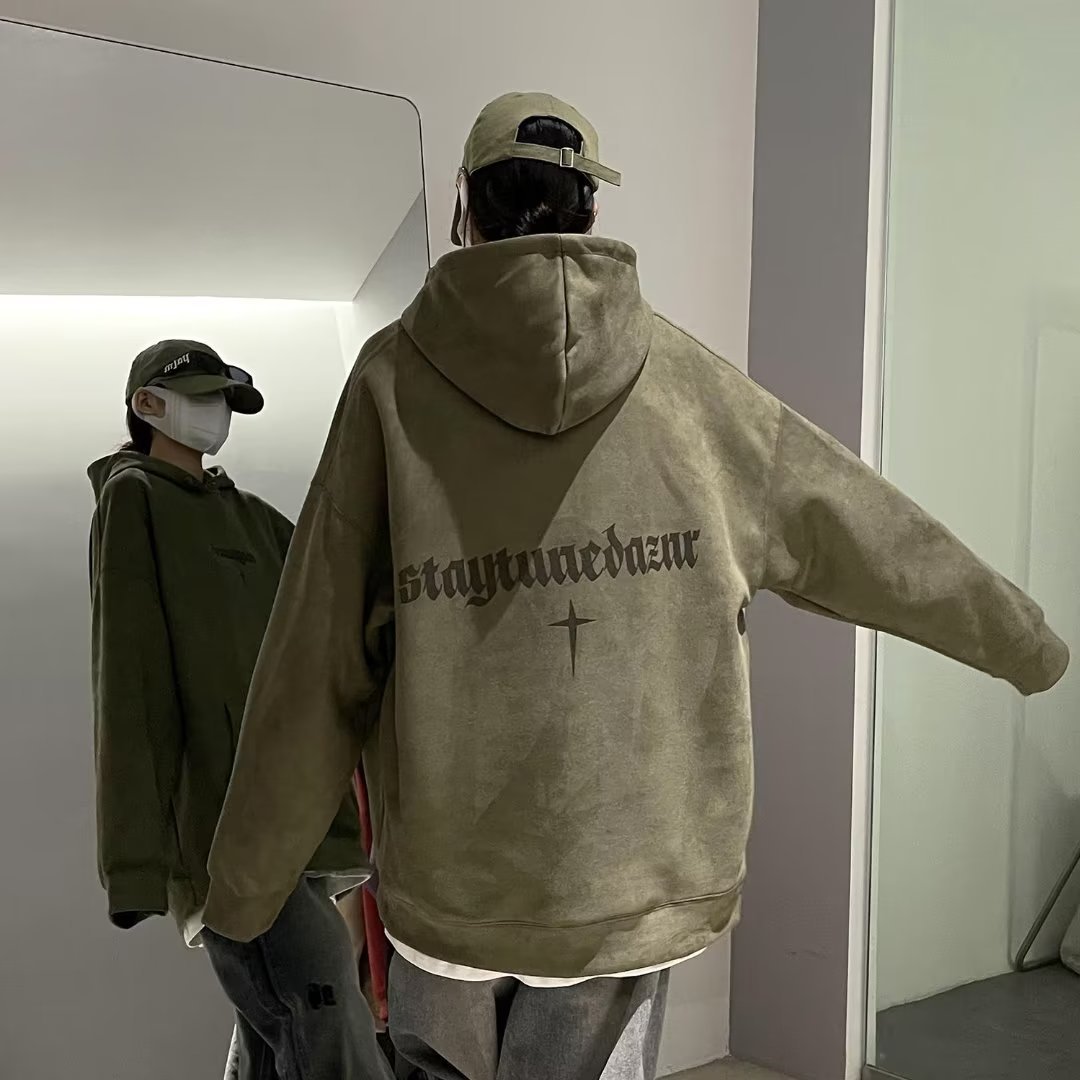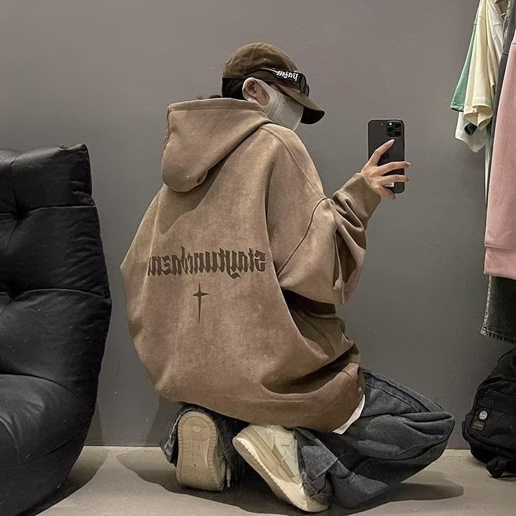 아메리칸 스타일 레트로 스웨터 남자의 후드 가을 유행 무거운 스웨이드 알파벳 인쇄 더피 슈아이 하이 스트리트 재킷