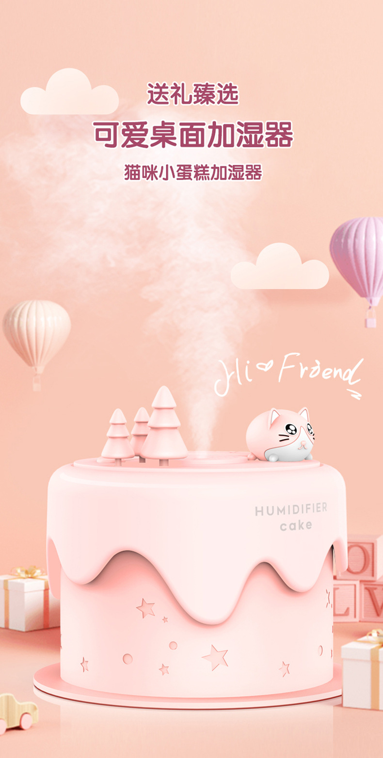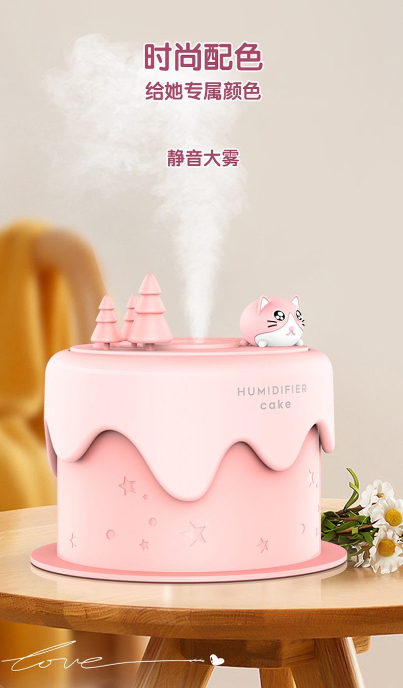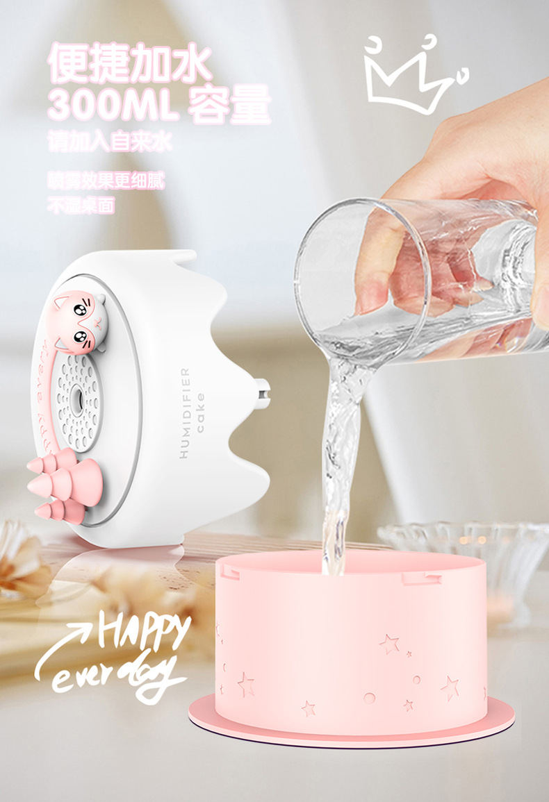 새로운 귀여운 애완 동물 미니 케이크 가습기 usb 야간 조명 홈 사일런트 스프레이 공기 정화 가습기