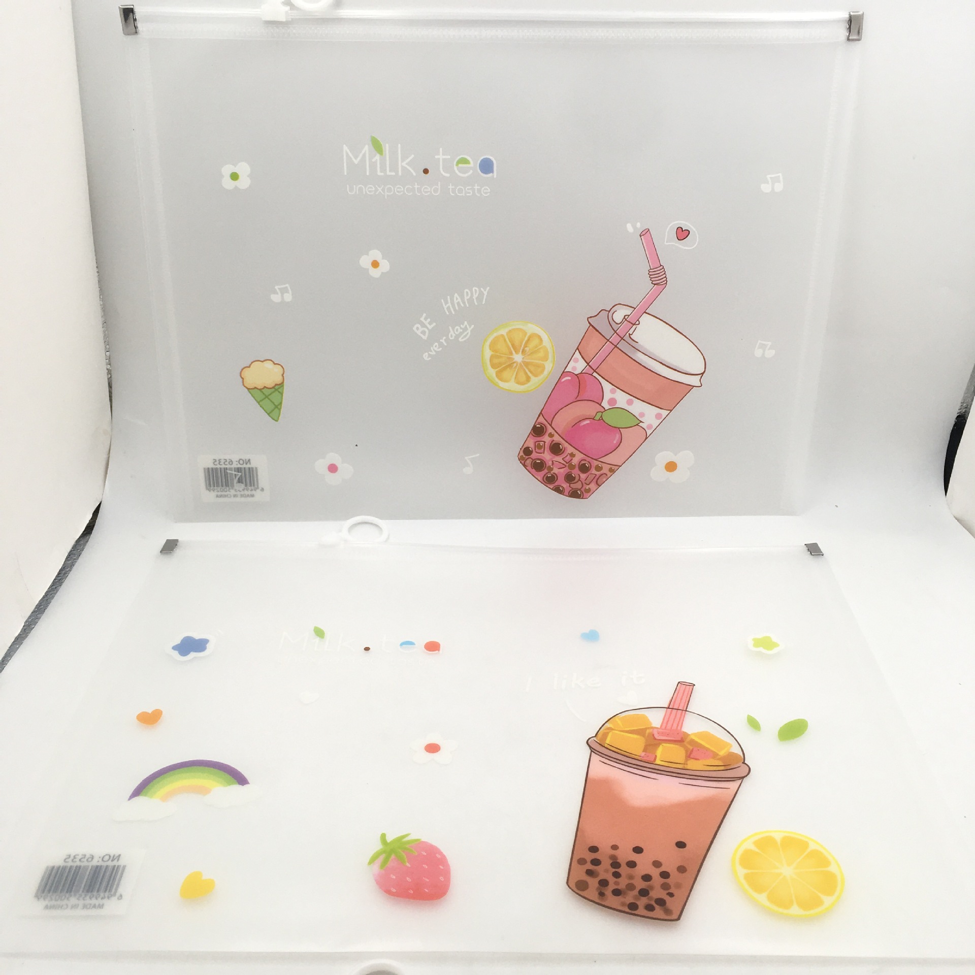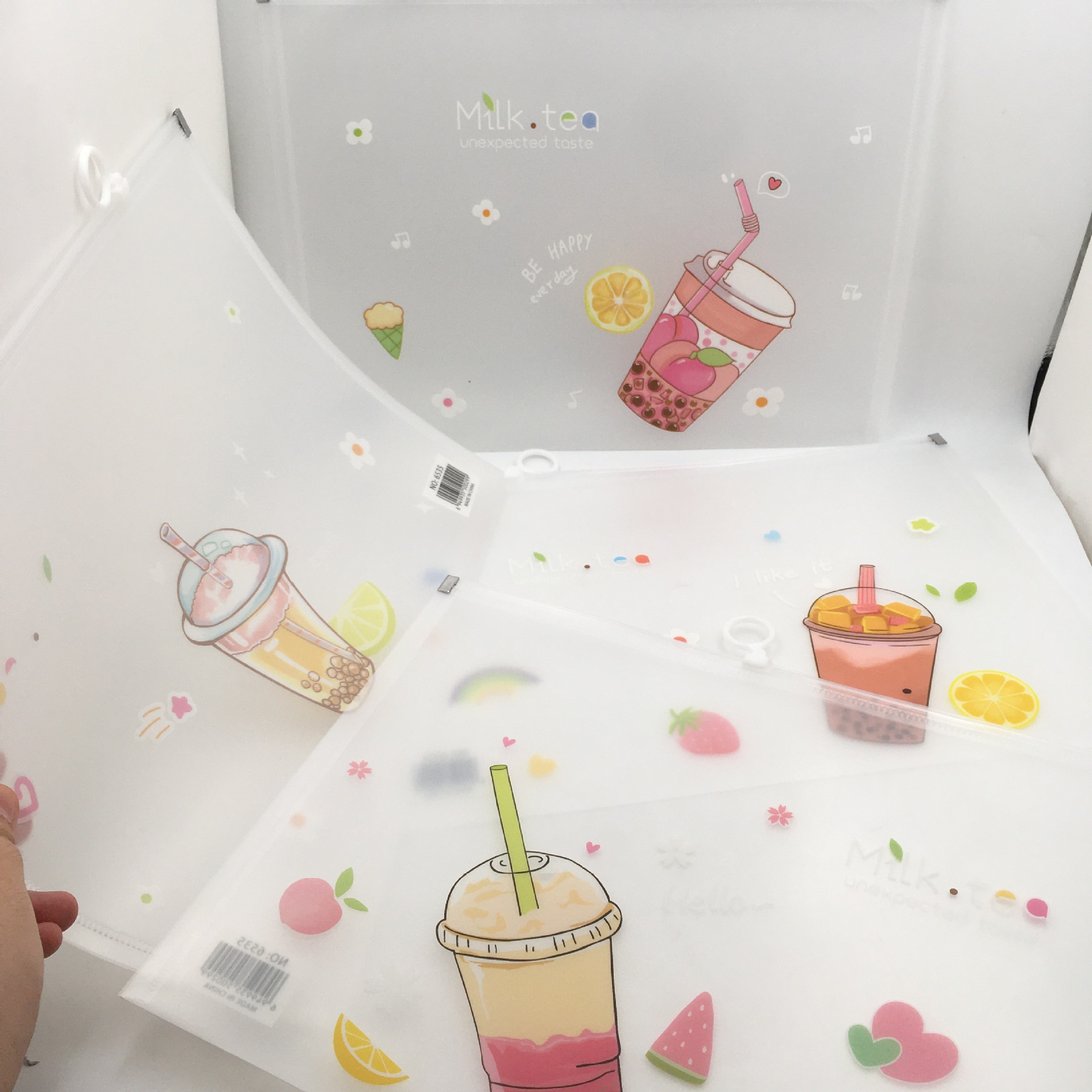 두꺼운 A4 drawstring 파일 가방 우유 차 컵 음료 저장 테스트 종이 가방 파일 재료 투명 파일 가방 문구