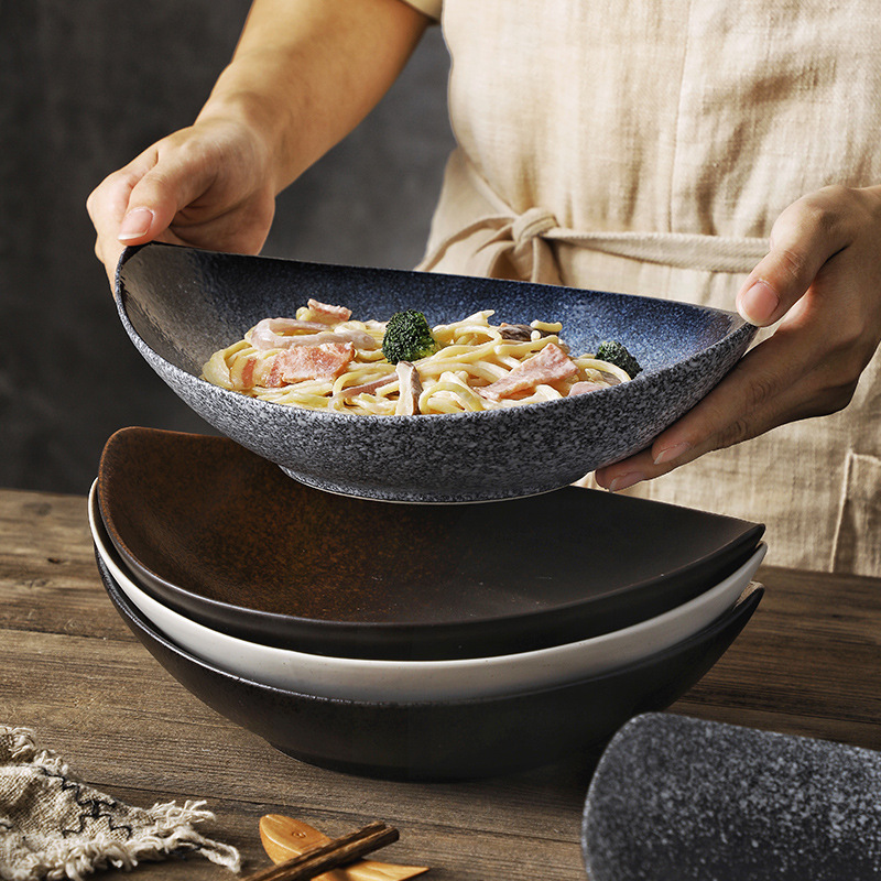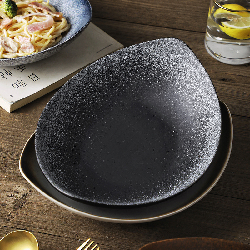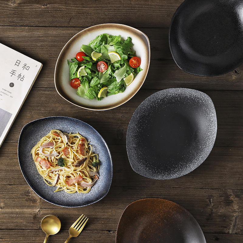 일본식 세라믹 네스트 플레이트 딥 플레이트 요리 가정용 본 중국 식기 디너 플레이트 요리 찐 계란 커스터드 딥 플레이트
