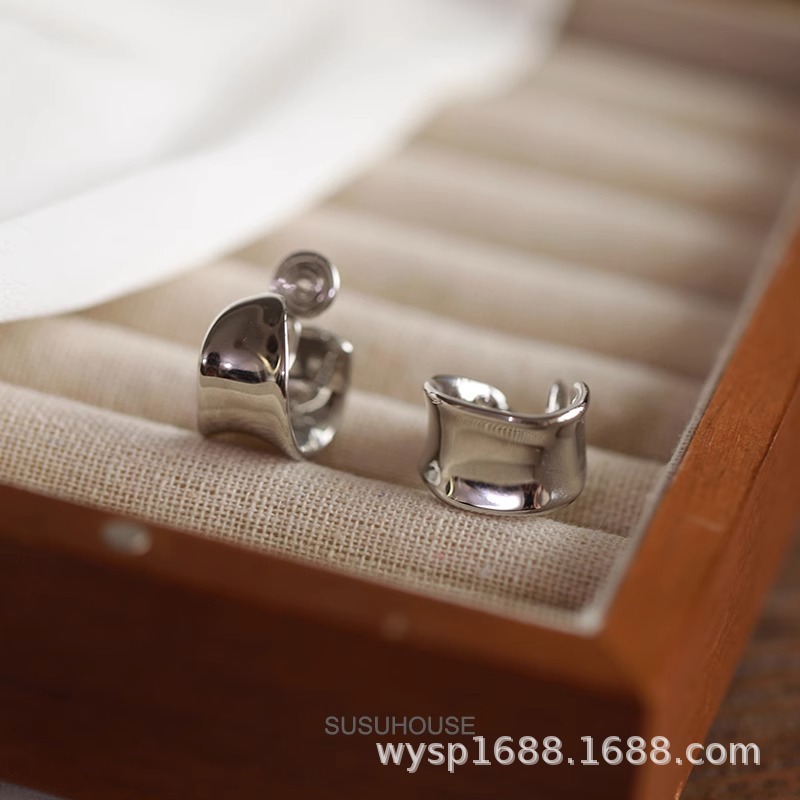 고급 감각 실버 모기 향 플레이트 이어 클립 인 이어 링 귀 구멍없이 여성의 유럽과 미국 스타일 귀걸이 간단한 독특한 귀걸이