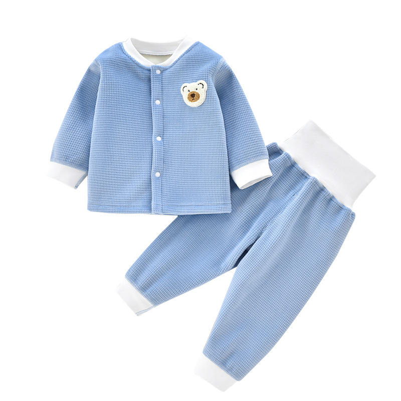 아기 기모 하이 웨이스트 배꼽 보호대 세트 아기 따뜻한 두꺼운 가을 옷 가을 바지 어린이 가정 의류 가을과 겨울 속옷