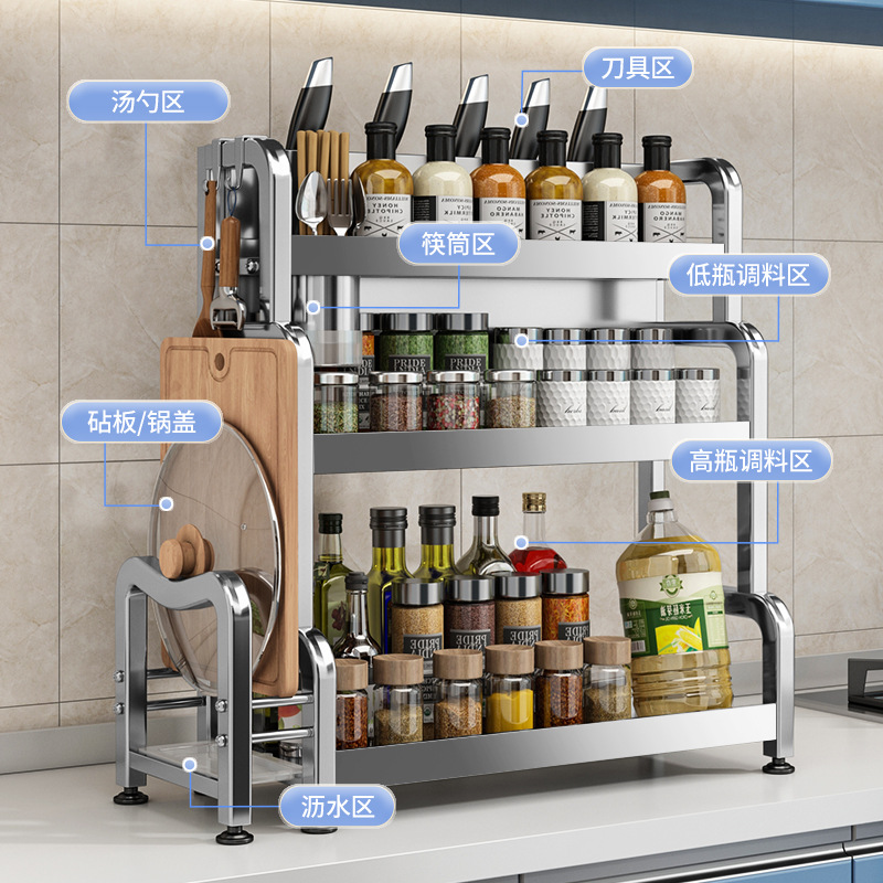 무료 배송 주방 조미료 랙 스테인레스 스틸 다기능 테이블 탑 젓가락 칼 홀더 소금 조미료 병 보관 상자
