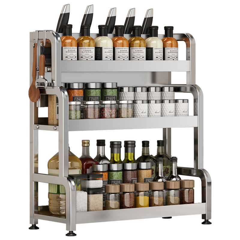 [스테인리스 스틸 3 층 50cm] 나이프 홀더 + 스틱 플레이트 홀더 + 젓가락 홀더 + 후크 * 6
