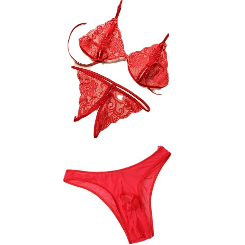 섹시 란제리 여자 잠옷 커플 유니폼 유혹 열정 3 점 남자 속옷 3 개 세트