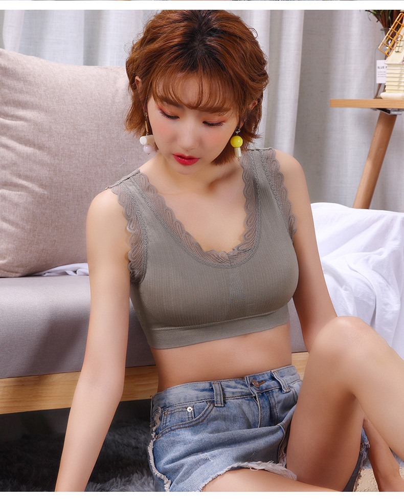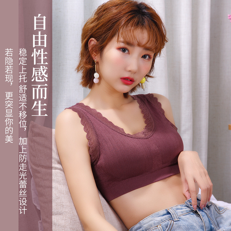 少女吊带裹胸无缝光丝无痕运动文胸女士螺纹无钢圈蕾丝美背抹胸