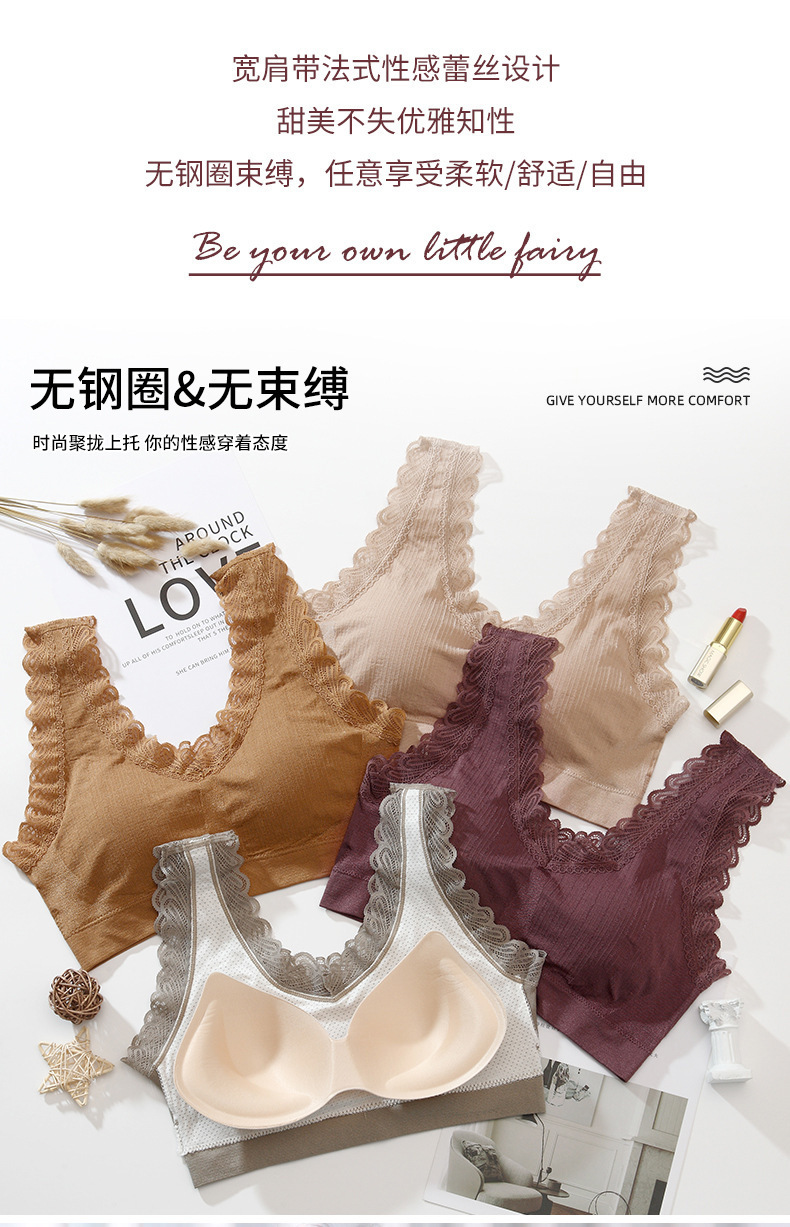 심리스 스포츠 여아 슬링 브라 심리스 라이트 실크 브라 여성용 스레드 링 프리 레이스 백 튜브 탑