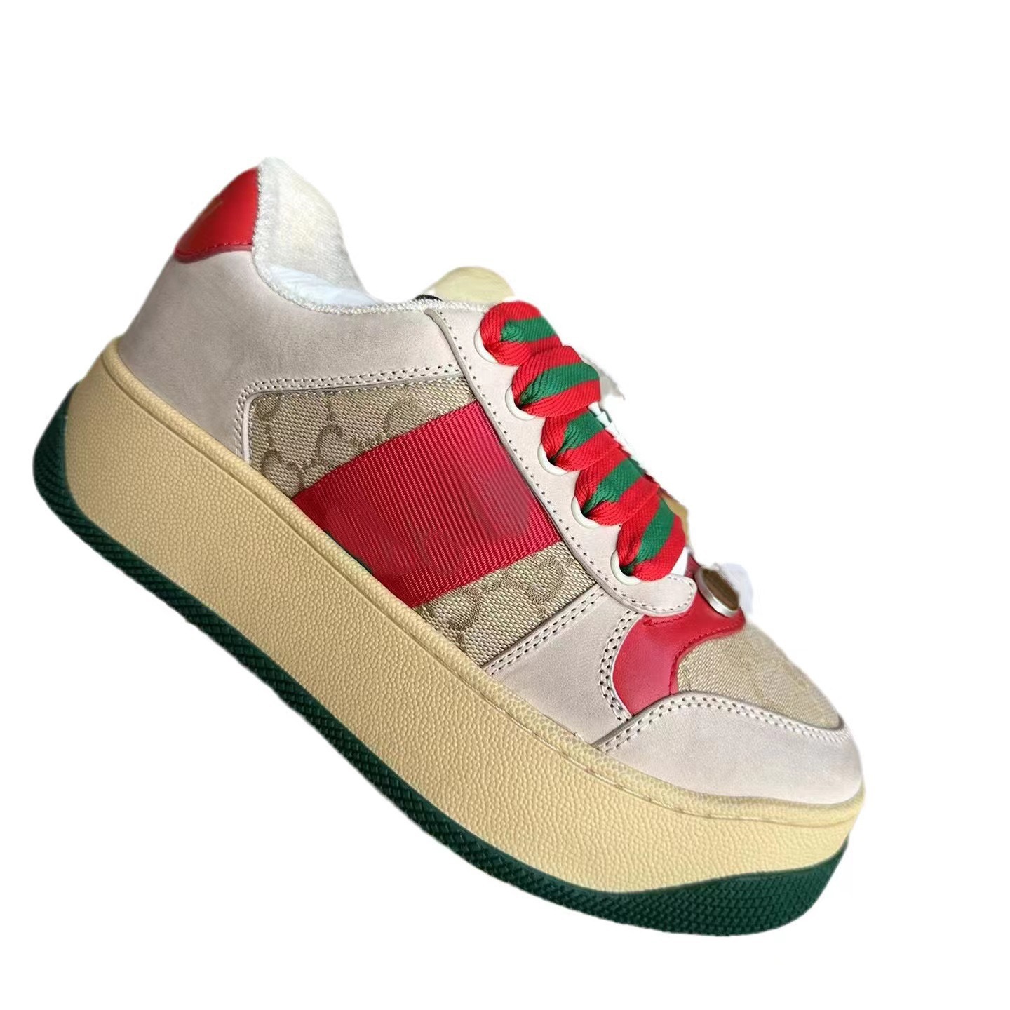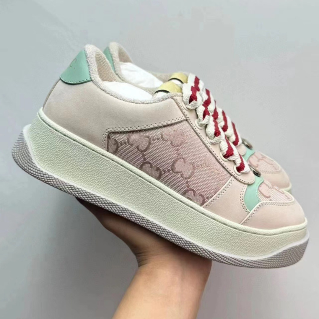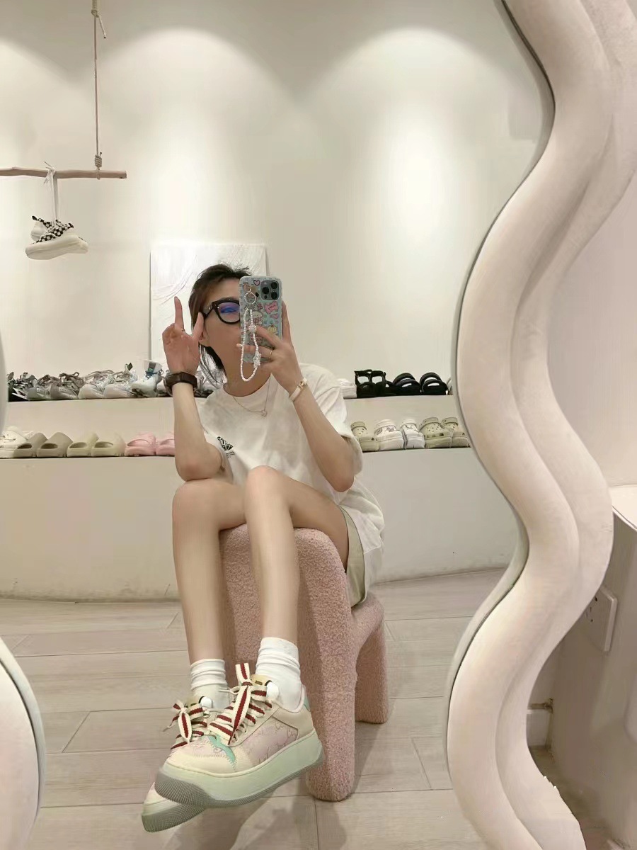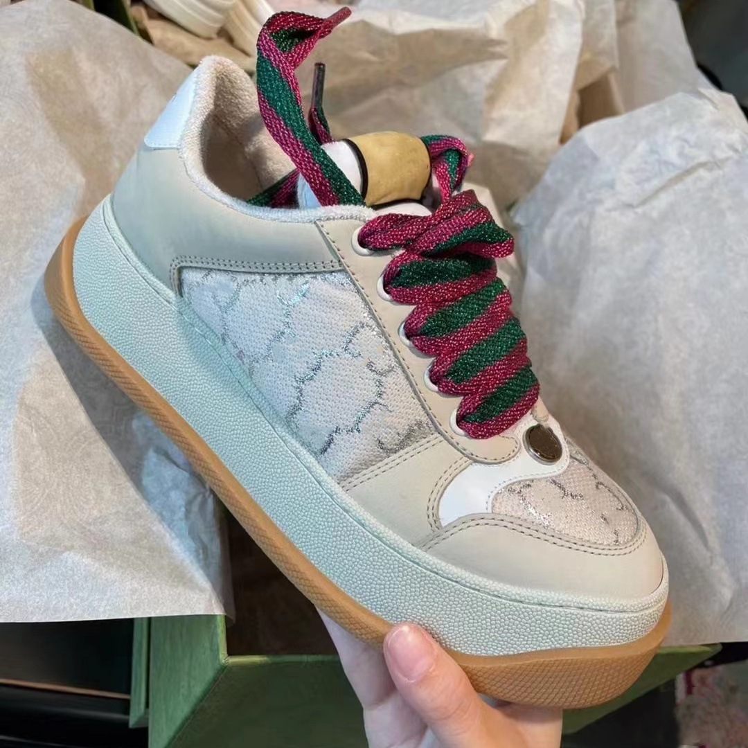하이 버전 2025 새로운 G 오래된 꽃 지방 딩 빵 신발 두꺼운 바닥 증가 흰색 신발 조커 가죽 더러운 신발 여성