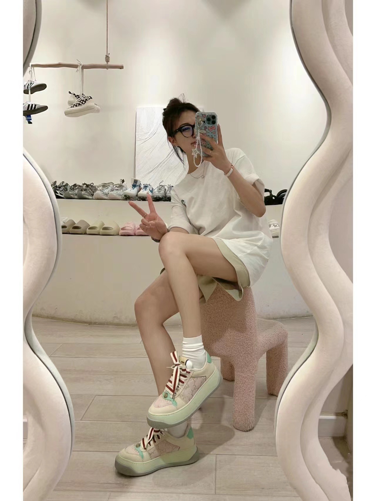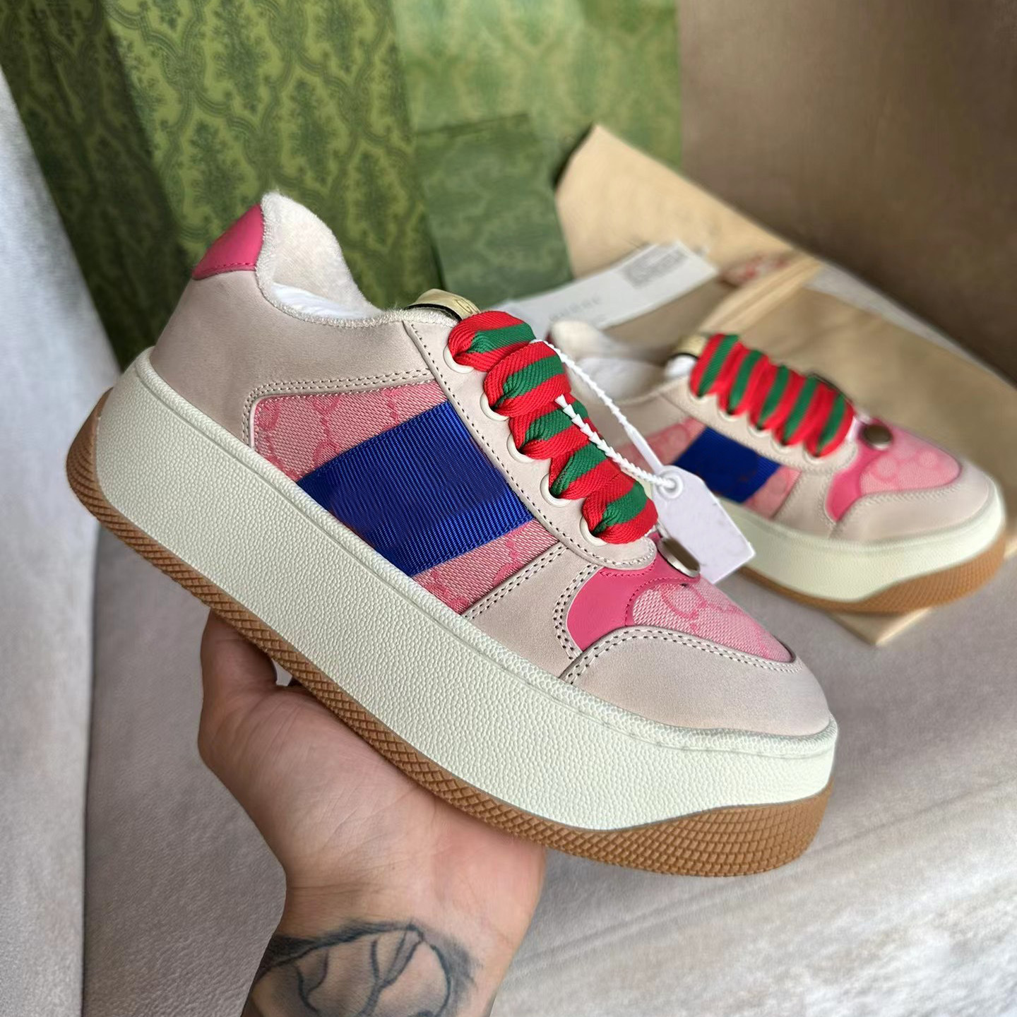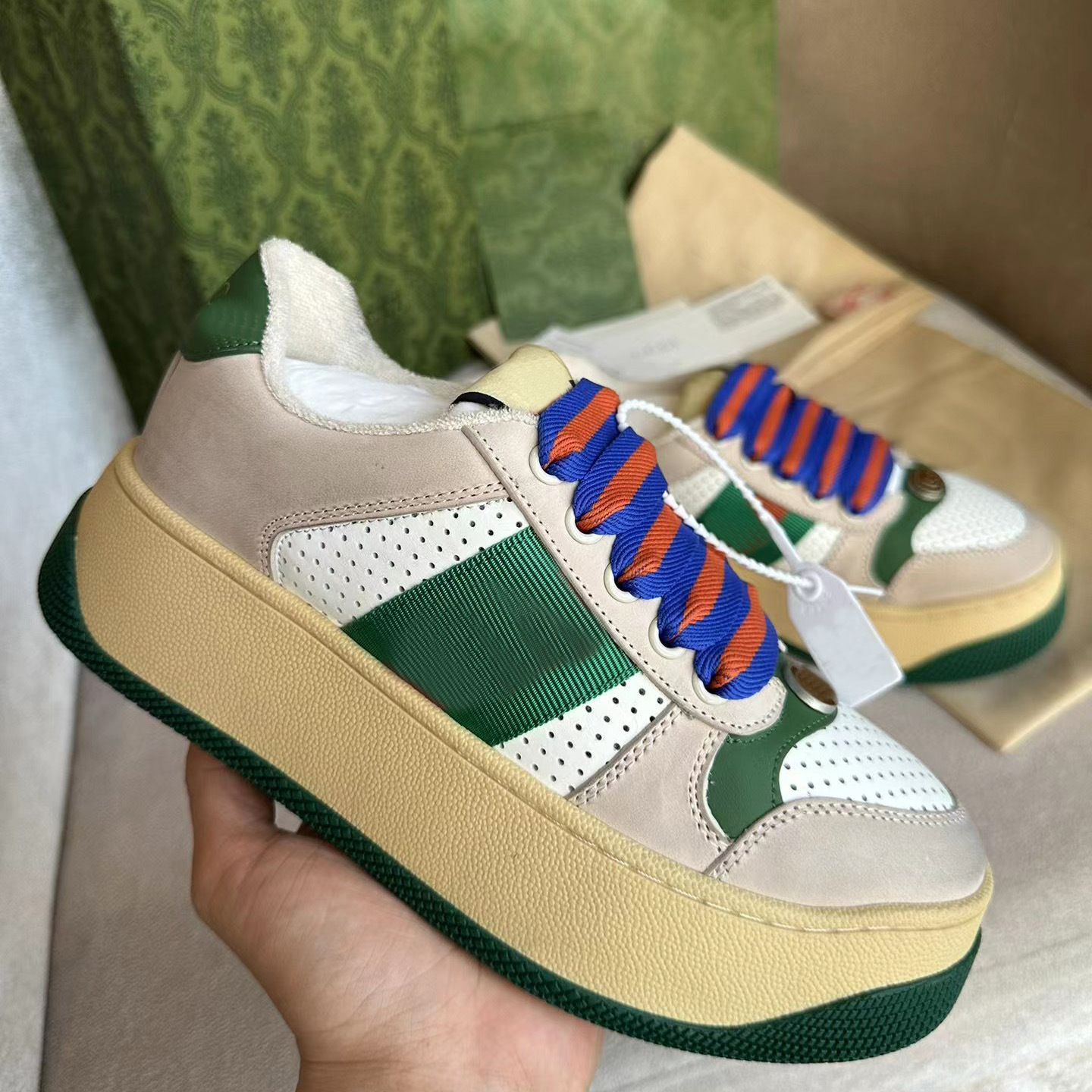 하이 버전 2025 새로운 G 오래된 꽃 지방 딩 빵 신발 두꺼운 바닥 증가 흰색 신발 조커 가죽 더러운 신발 여성