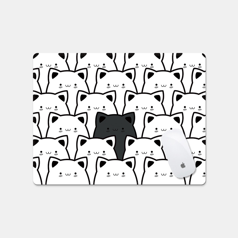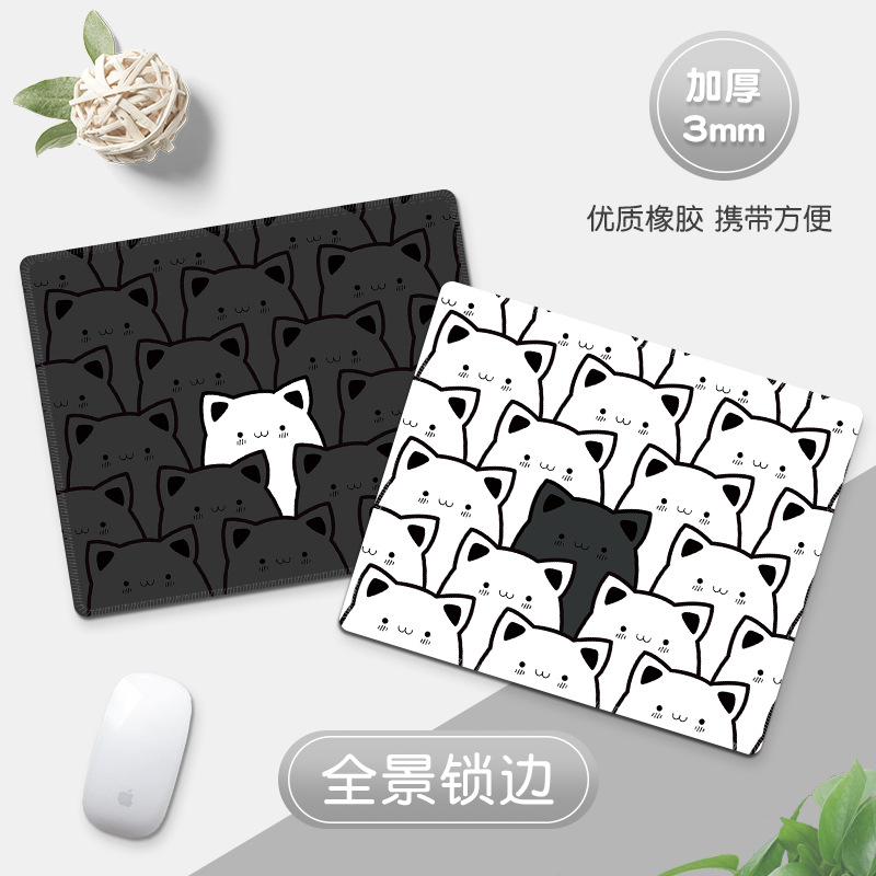 스몰 사이즈 블랙 스택 고양이 마우스 패드 만화 패턴 소프트 패드 사무실 엔터테인먼트 두꺼운 잠금 가장자리 컴퓨터 책상 패드 손목 패드
