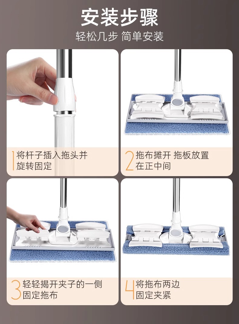 샹자메이 천걸레, 가정용 원터치 청소, 탈부착 가능, 건식 및 습식 겸용, 나무 바닥 청소용 천걸레