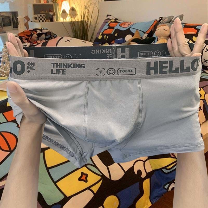 TikTok 폭발 HELLO 남성 속옷 복서 남성 청소년 패션 스포츠 복서 반바지