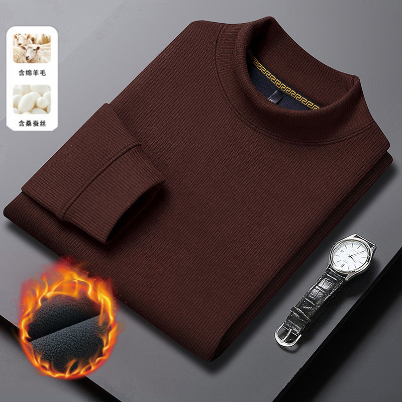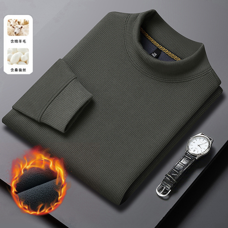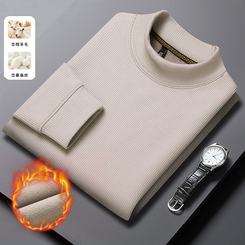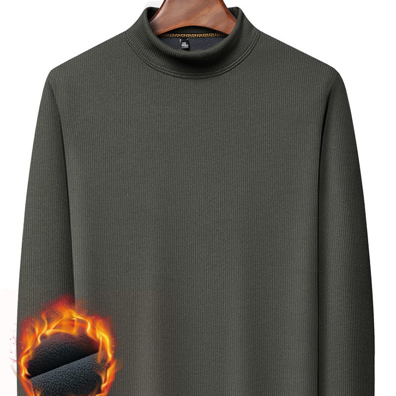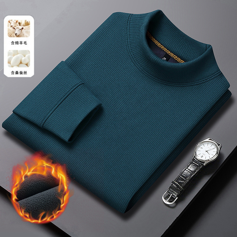 라이브 폭발 양 울 긴팔 티셔츠 남성용 가을과 겨울 새로운 기모 남성용 두꺼운 하프 하이 칼라 베이스 셔츠