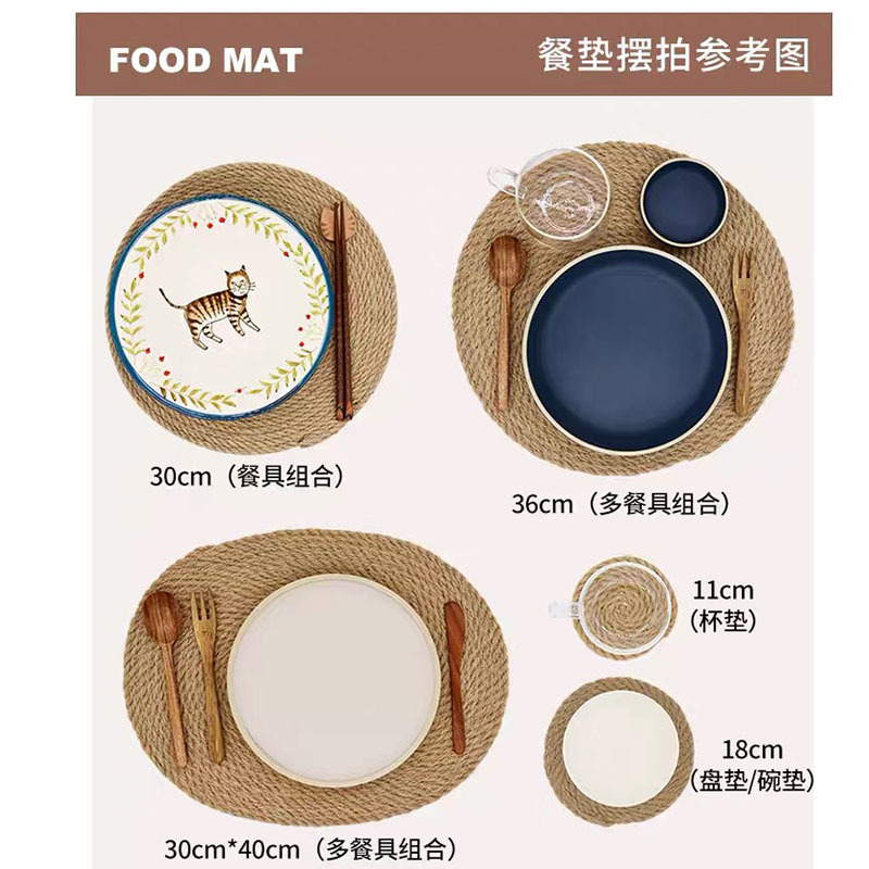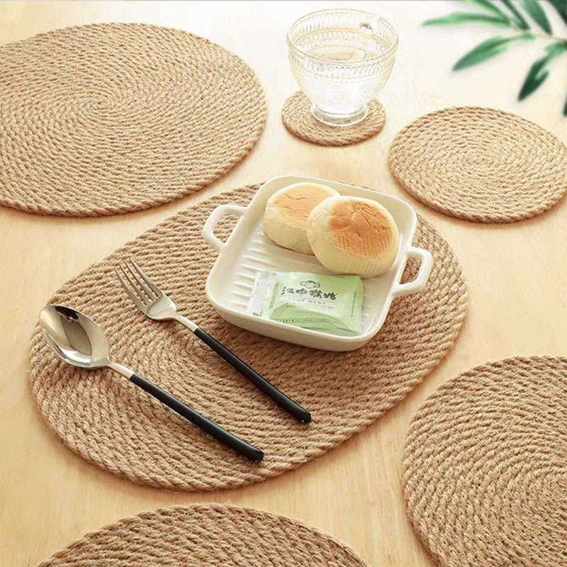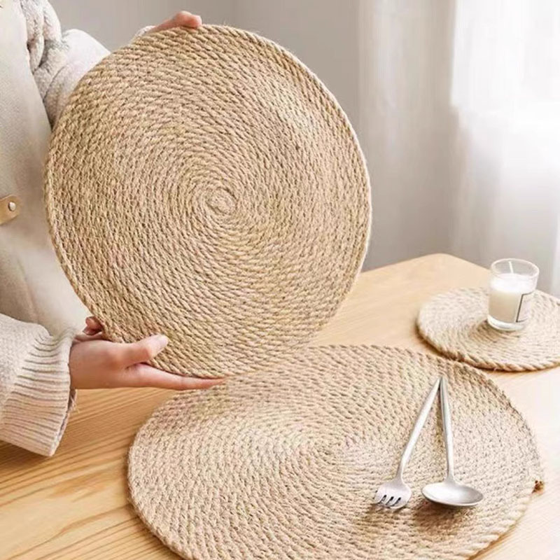 일본 밀짚 공예 플레이스 매트 린넨 플레이스 매트 대마 플레이스 매트 대마 로프 플레이스 매트 짠 코스터 절연 플레이트 매트 아마존