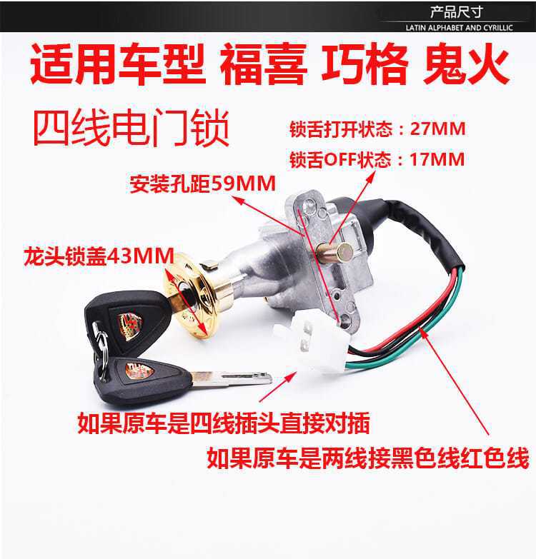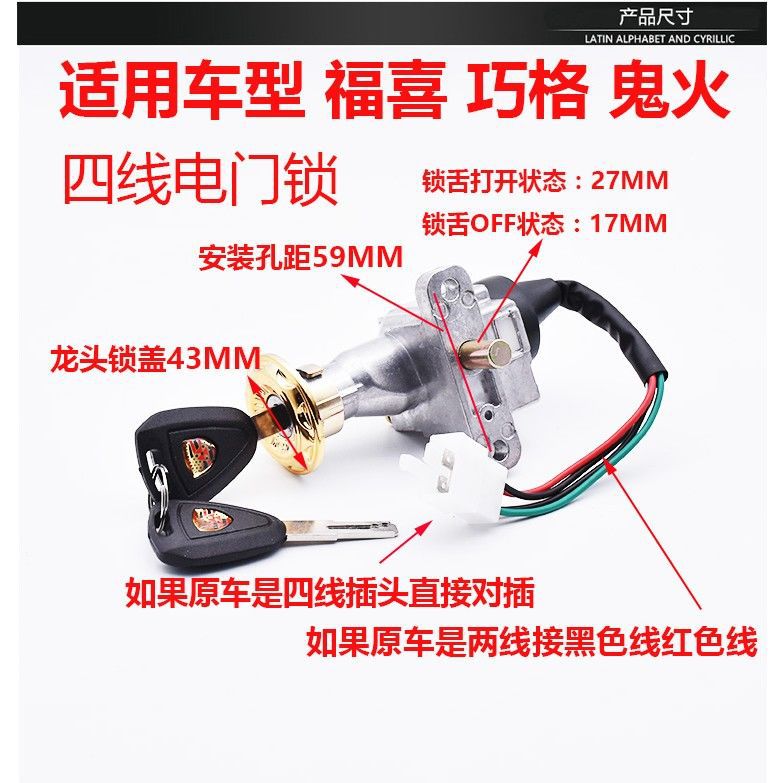 전기 자동차 도어 잠금 장치 qiaoge 두 번째 라인/4 라인 드래곤 헤드 잠금 트램 전원 잠금 장치 배터리 자동차 키 스위치 유니버설