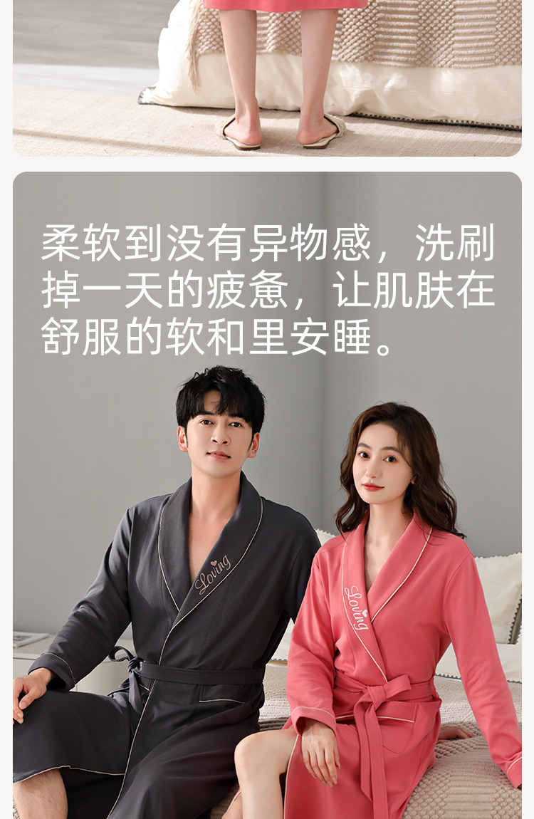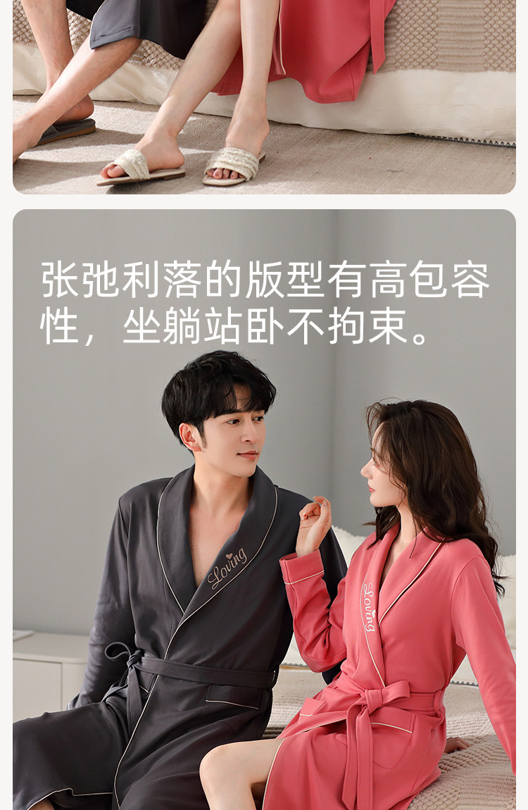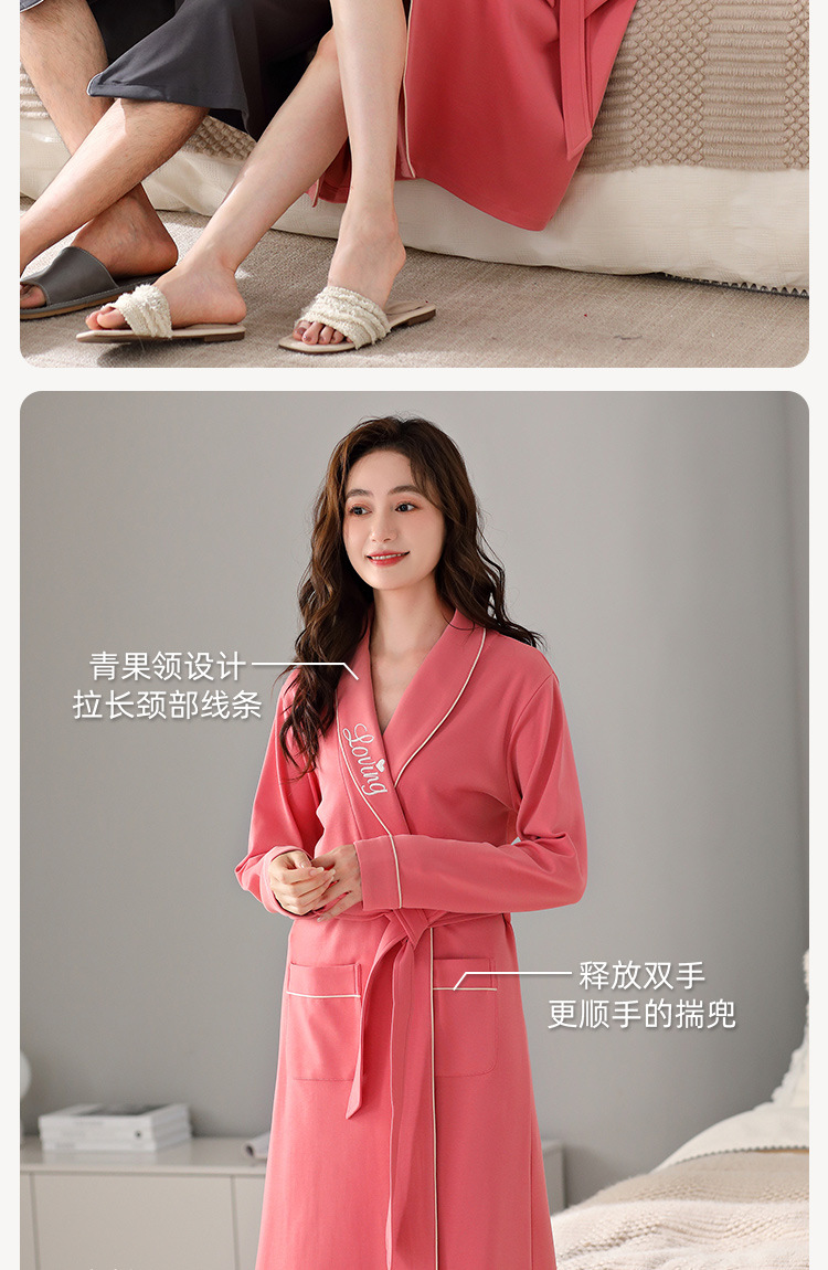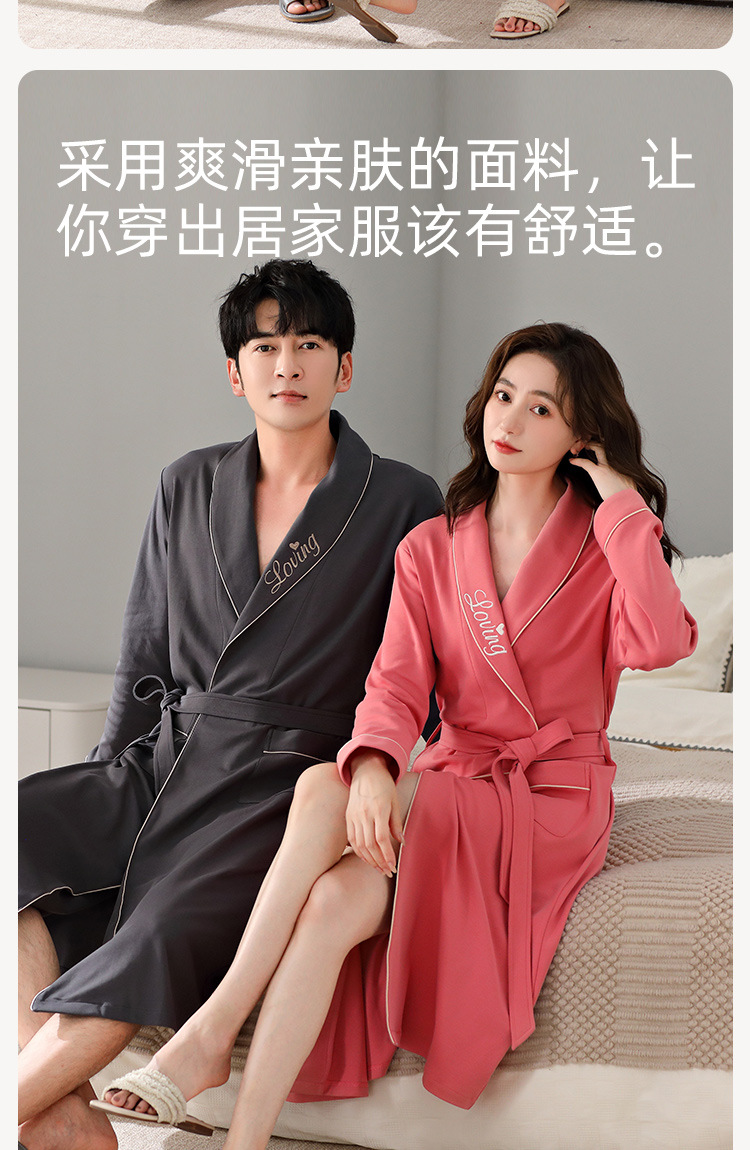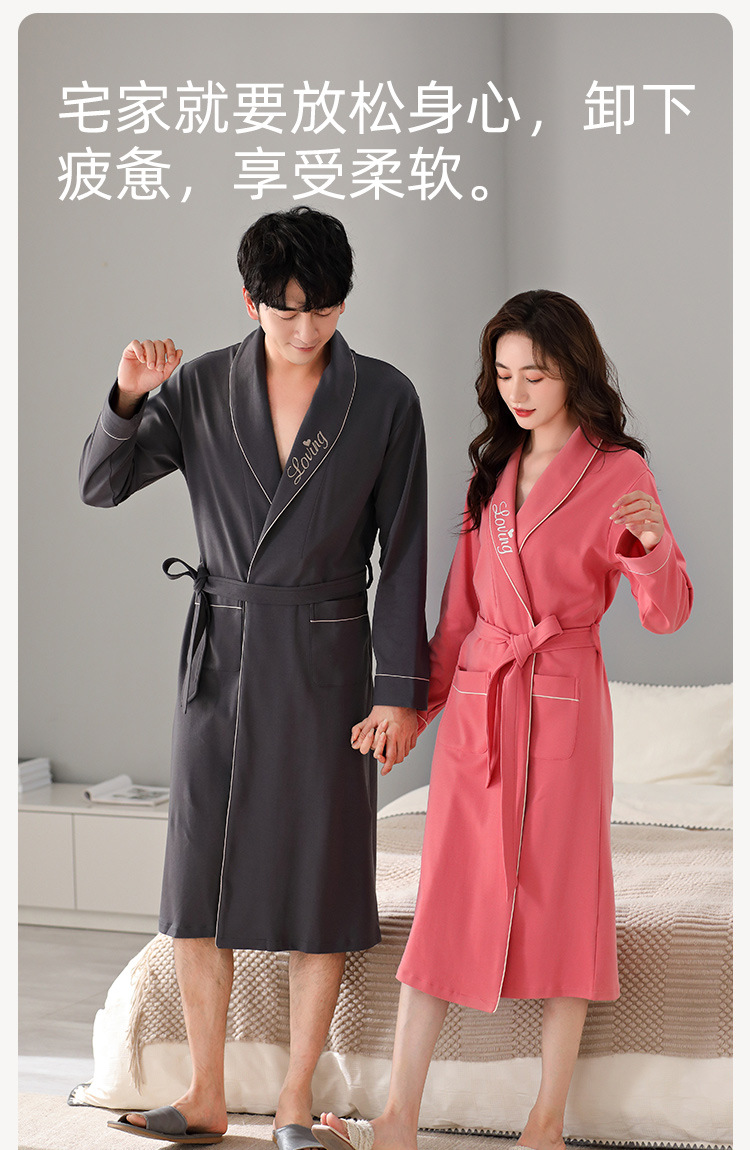 여성 봄과 가을 면화 커플 중간 길이 2023 새로운 온라인 레드 스타일 남성 목욕 가운 홈 착용 목욕 가운