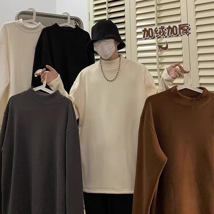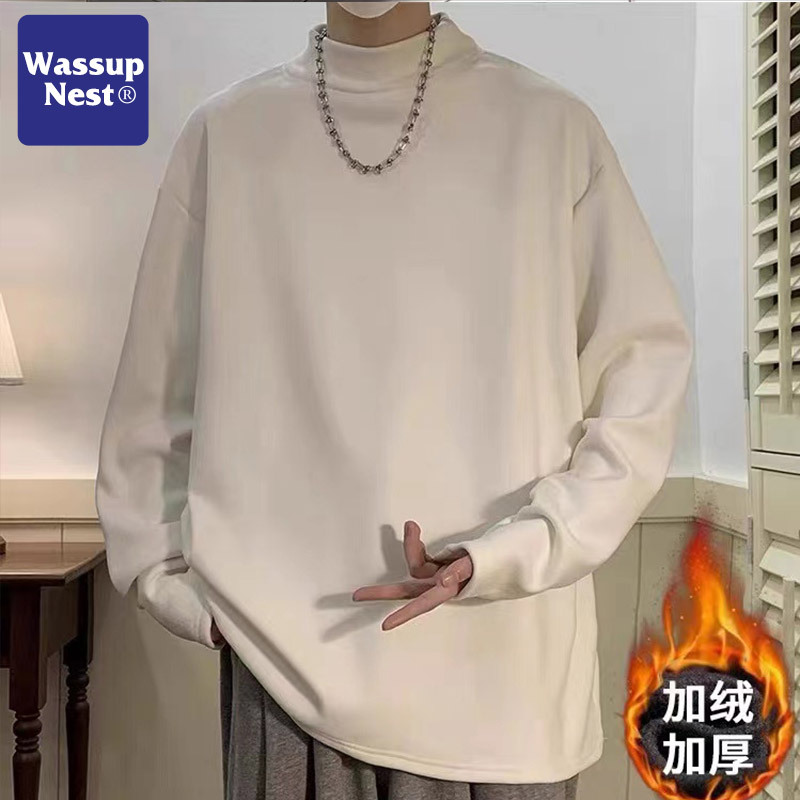 Wassup 독일 벨벳 긴팔 티셔츠 남성 봄, 가을 솔리드 컬러 패션 캐주얼 하프 터틀넥 바닥 셔츠 트렌디 이너 탑