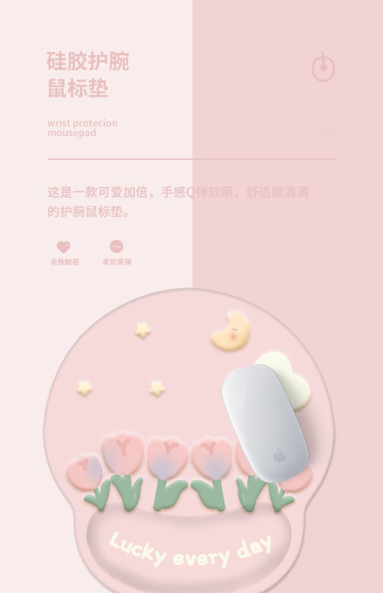 튤립 마우스 패드 두꺼운 손목 패드 만화 키보드 손 지원 베개 사무실 홈 여행 귀여운 미끄럼 방지 지원