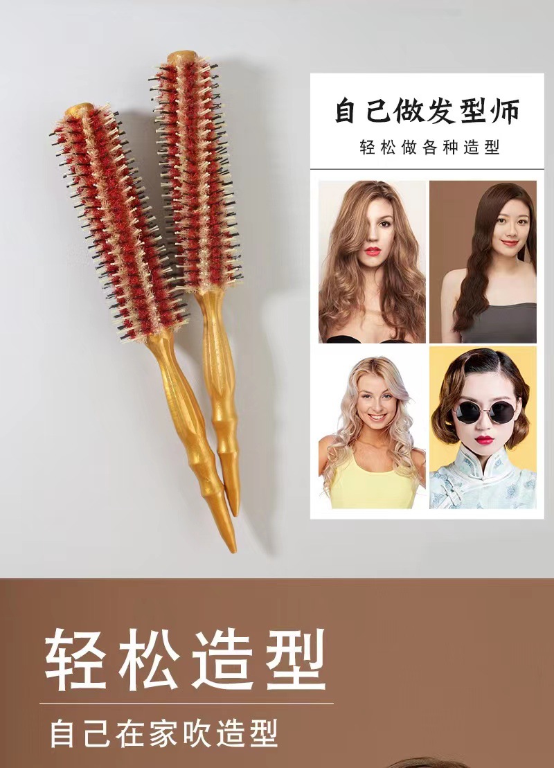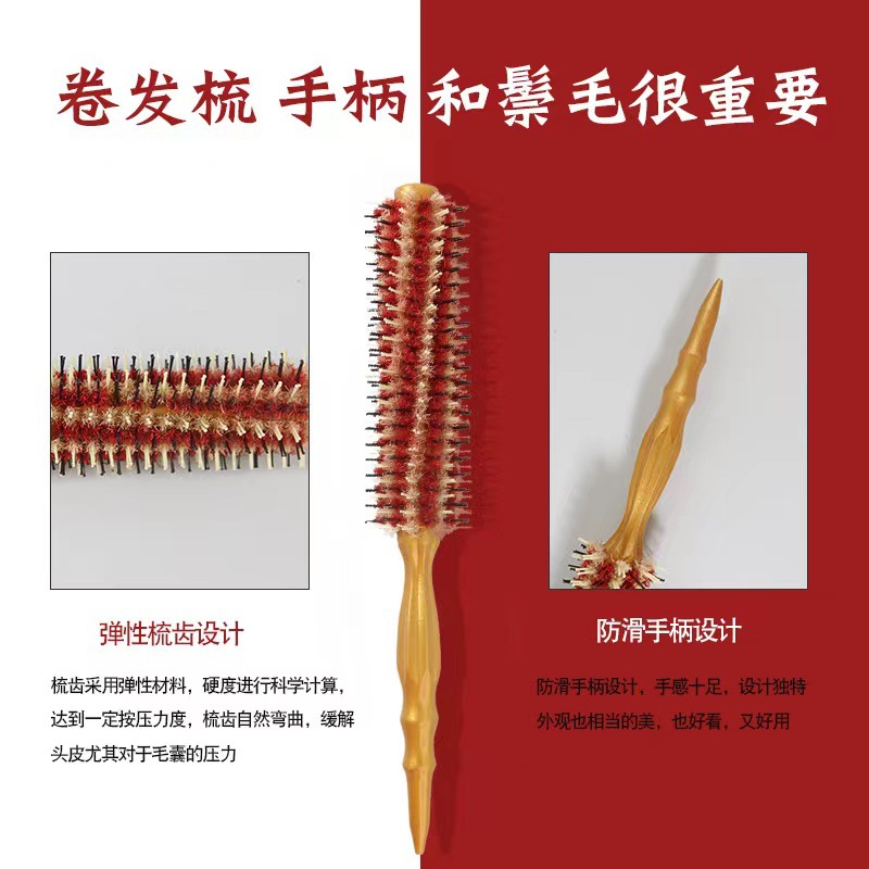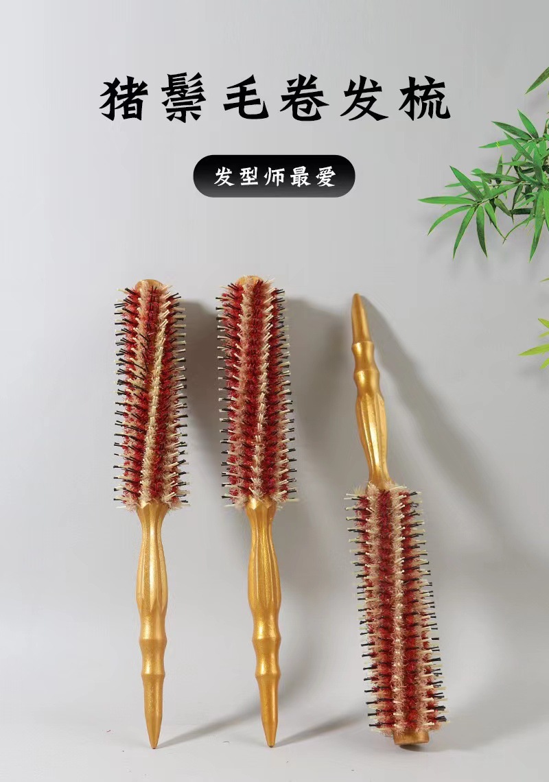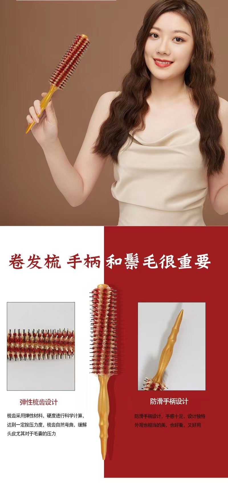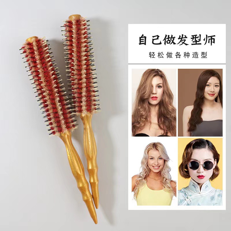 이발소 전문 돼지 갈기 고온 저항 헤어 스타일링 롤 빗 곱슬 머리 빗 어린이 가정용 푹신한 내부 버클 웨이브