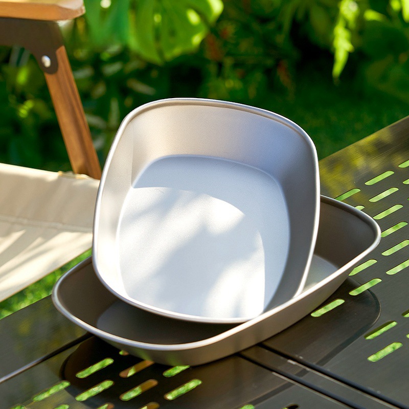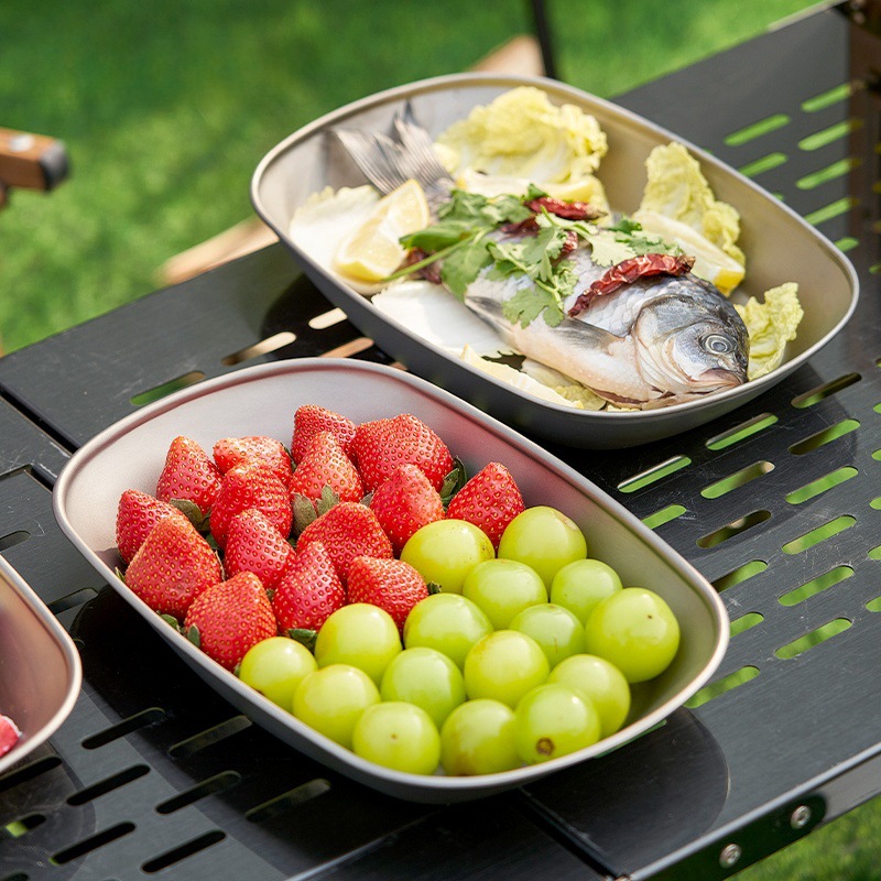 순수 티타늄 야외 생선 플레이트 피크닉 스팀 플레이트 캠핑 과일 샐러드 플레이트 플랫 접시 캠핑 베이킹 플레이트 휴대용